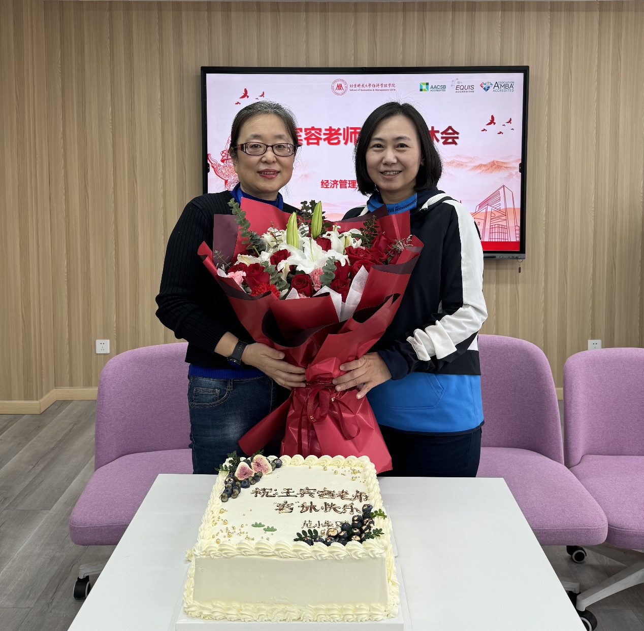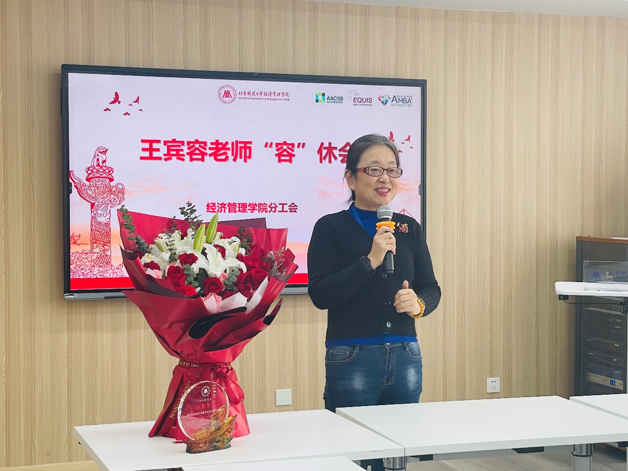 和“容”悦色,润泽桃李芬芳;德“容”兼备,以身率先垂范。会上,播放了学院工会精心制作的王宾容老师荣休视频,视频回顾了王宾容老师30年的执教生涯,取得的科研成果及荣获奖项,以及日常点滴和多位老师的真挚祝福。