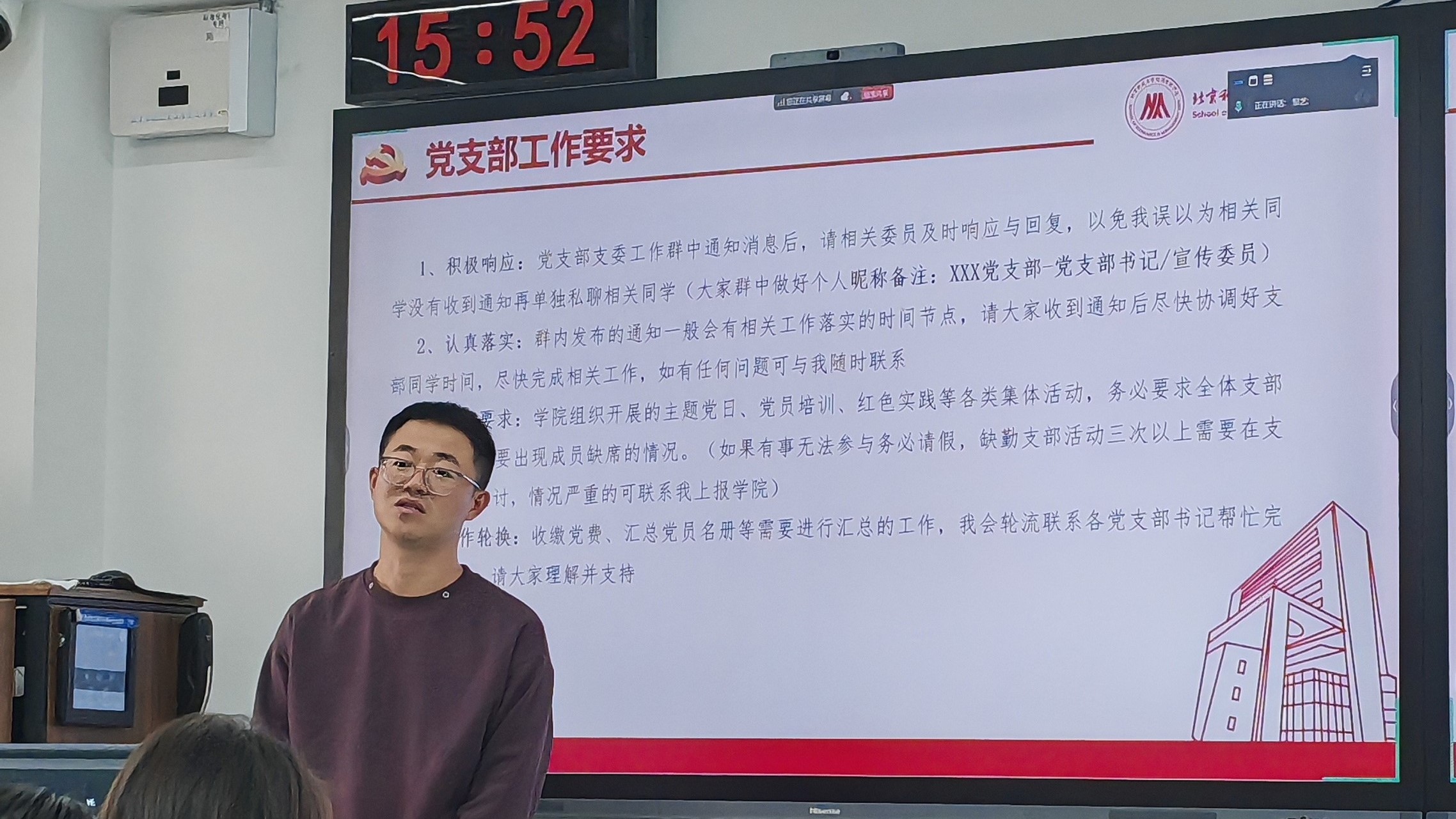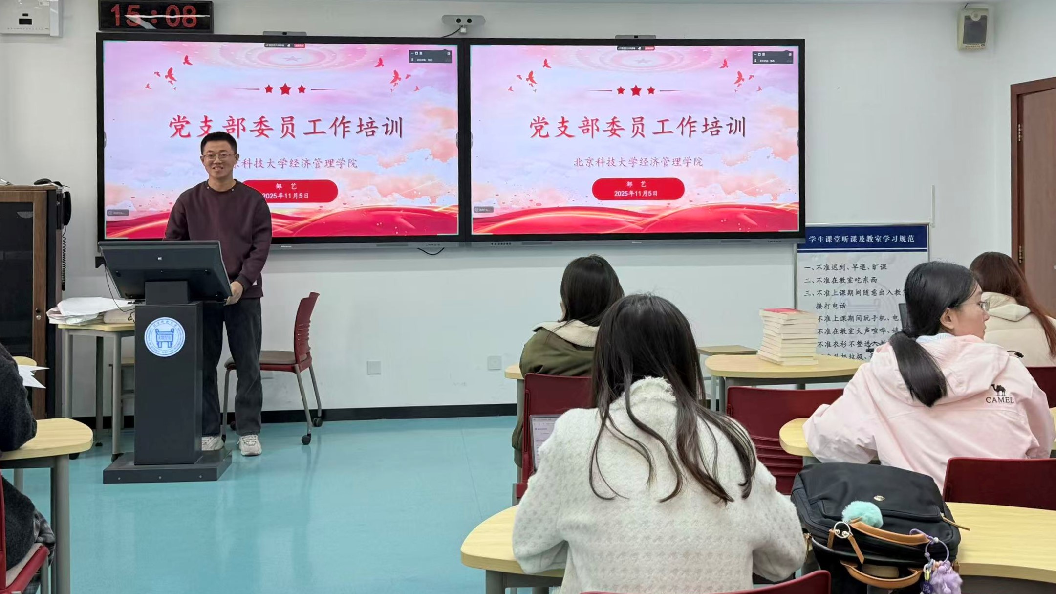 2025年11月5日15:00-16:30,狂人小说 在经管楼507组织开展了硕博党支部委员工作培训。本次培训由学院辅导员邹艺主持,各硕博党支部书记、组织委员(兼纪检委员)、宣传委员等支部委员线下集中参加。