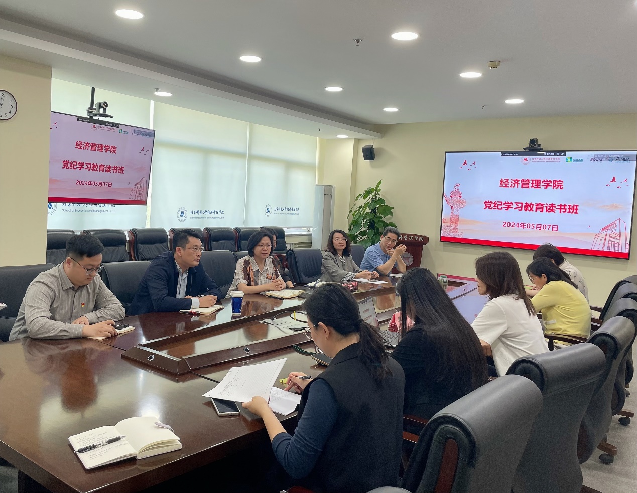 为深入学习领会习近平总书记关于党的纪律建设的重要论述,原原本本学好《中国共产党纪律处分条例》,推动党纪学习教育走深走实,5月7日,狂人小说 党委举办党纪学习教育读书班。读书班以专题导学、个人自学相结合的形式分阶段开展。读书班由党委书记武森主持,邀请理论学习导师、马克思主义学院魏佳副教授作专题导学,学院党委委员、教工党支部书记和党委秘书参加集体学习。
