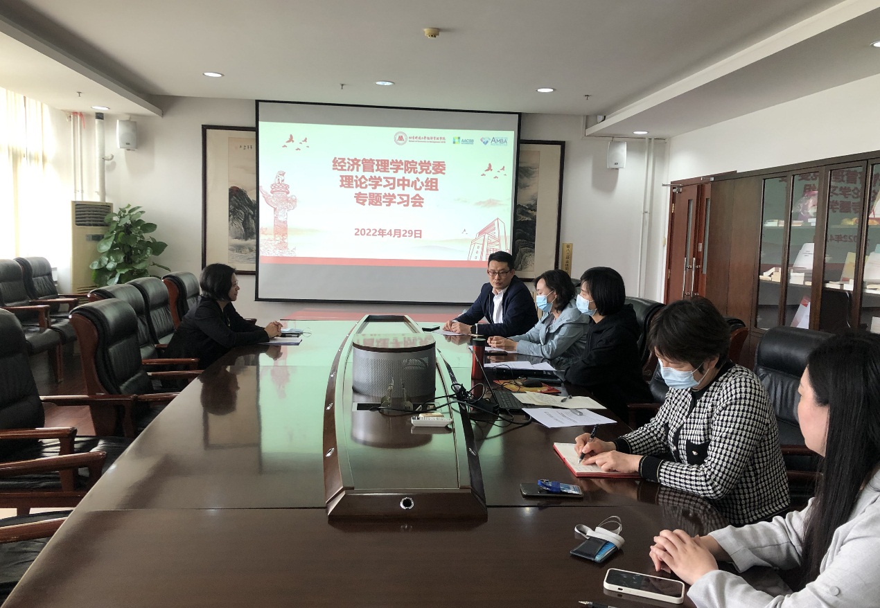 4月29日下午,狂人小说 党委在经管楼809召开党委理论中心组专题学习会,会议由学院党委书记武森主持并领学,全体中心组成员参加了学习会议。