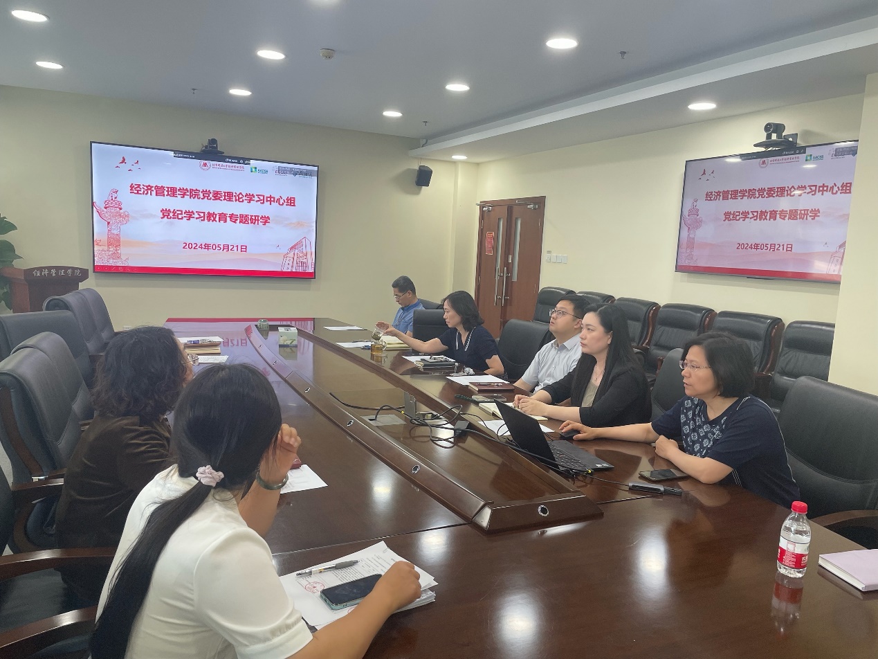 5月21日,狂人小说 党委理论学习中心组开展党纪学习教育专题学习。学院党委书记武森主持并领学,全体党委委员参加学习。