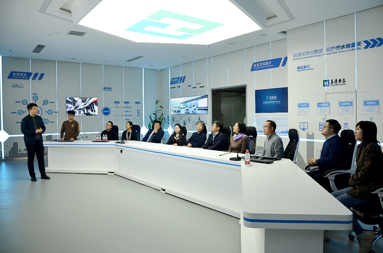 随后,参访团队在华清安泰相关负责人的陪同下,来到用友产业园地热可再生能源示范项目中心,认真听取了项目负责人介绍项目设计建设、运维管理等情况,并查看了项目实时运行数据。机房内能源设备通过二维码设备信息进行集中管理,实现线上+线下的运维模式,大大提高管理效率、降低能源使用成本,延长设备使用寿命。