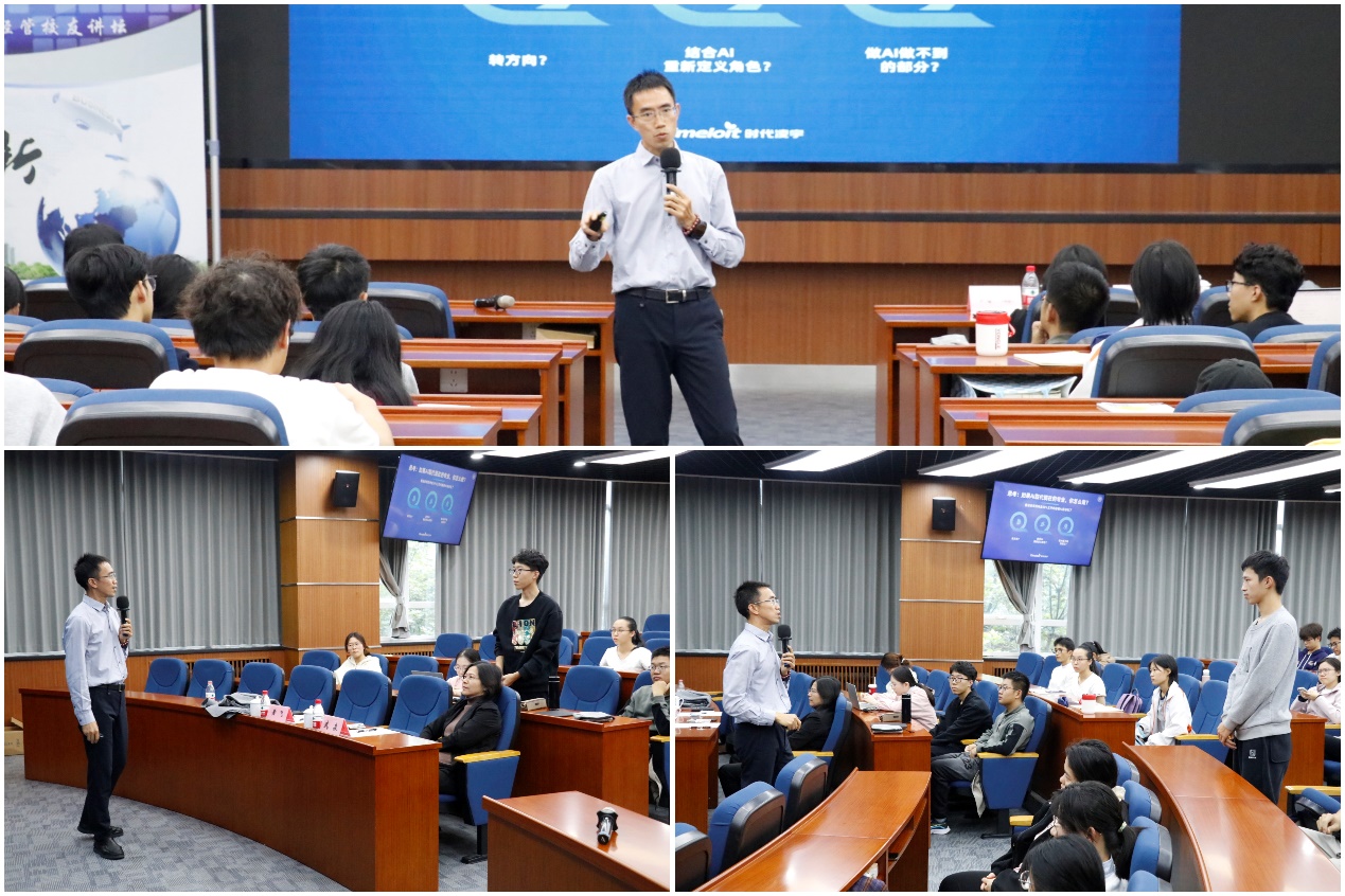 讲座中,黄飞校友与同学们亲切互动,结合自身大学经历与职场感悟,分享了宝贵心得。他指出,保持身体健康、加强精力管理、积极调节心理状态,是实现个人可持续发展和应对变革的重要支撑。他倡导“马拉松式”成长理念,鼓励同学们摒弃速成焦虑,在快速变化的时代中保持定力,实现长期积累与稳步成长。他勉励大家主动拓宽视野,紧跟AI发展趋势,积极培养“AI+”跨界能力,打造个人核心竞争力,在人机协同的新时代中把握机遇、开创未来。