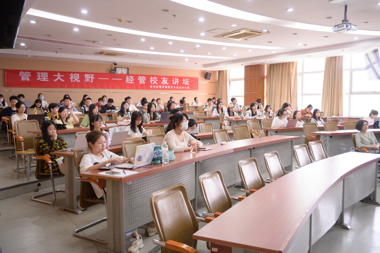 讲座最后,武森书记代表学院再次向刘兴宇校友的精彩分享表达了衷心的感谢。她热忱地欢迎校友们常回来看看,继续关注和支持学院的发展建设,并表示为搭建校友和在读学子的交流桥梁,“管理大视野——经管校友讲坛”会持续邀请优秀校友担任主讲嘉宾,带来不同的行业前沿知识,欢迎大家继续关注。