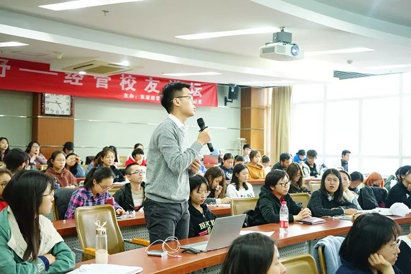 讲座提问环节,现场听众就金融机构的业务范围和发展前景,以及未来想从事投资行业,自己在就业的时候,应该如何选择第一步等问题与校友进行了探讨。最后,武书记对校友的分享表示感谢,并表示管理大视野以后的校友分享也会涉及到更宽广的领域,带来不同的行业前沿知识,欢迎同学们继续关注。合影留念后,活动结束。