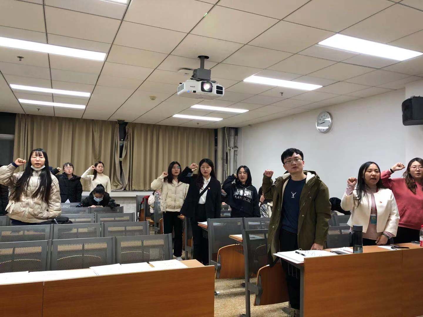 11月30日晚,会计研党支部在经管楼504召开了党员发展大会和十一月组织生活,学院党委秘书曾凌燕、研究生辅导员丁源、支部全体党员和积极分子参加会议,大会由支部书记童梦露主持。大会主要讨论接收熊梦圆同志为预备党员问题以及分享五中全会学习感悟。