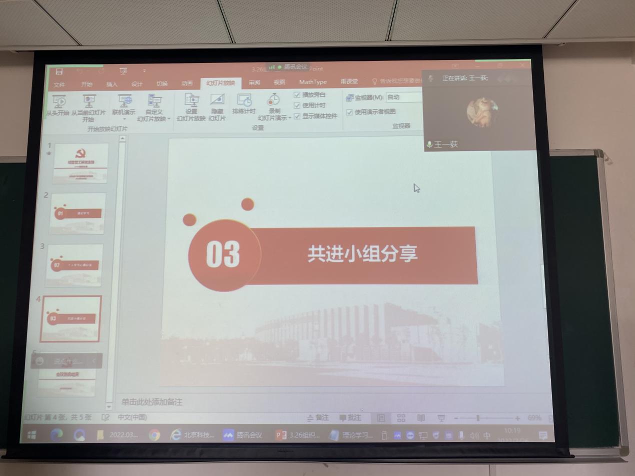 2022年3月26日9:00,狂人小说 管工研党支部开展了三月党支部的组织生活活动,因疫情防控原因,本次组织生活于经管楼502、管庄校区教学楼109和腾讯会议同步开展。支部党员34人参加,积极分子13人列席。