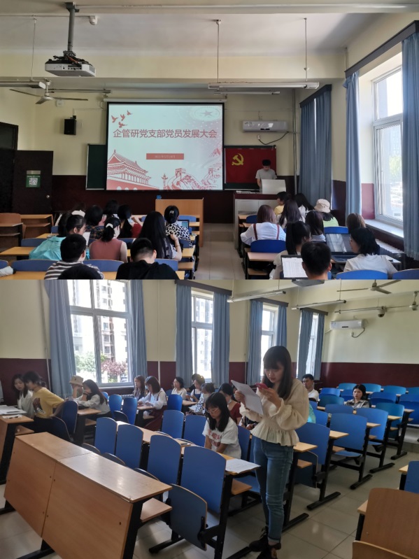 5月29日下午3点,企管研党支部于管庄校区教学楼203教室召开了党员发展大会。会议由企管研党支部书记刘维主持,支部党员及积极分子参加。大会正式开始前,组织委员董璟仪清点到场人数。本次大会应到正式党员21名,实到17名,未到正式党员4名。实到会正式党员人数超过支部有表决权党员的半数以上,可以开会。