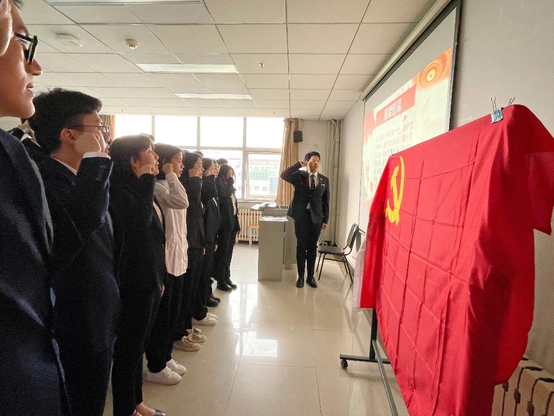 会议最后,党支部全体预备党员面向党旗进行入党宣誓,以表达对党的崇高敬意,并以此激励自己严格要求自我,忠实践行自己的入党誓言。在清晰而又坚定的宣誓声音的回响中,铮铮誓词再一次铭刻在每一个在场的人的心中,坚定了大家爱党、信党、跟党走的理想信念,增强了党组织的凝聚力和战斗力。