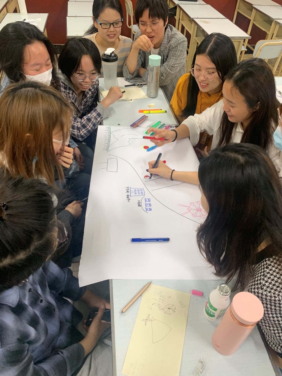 随后,辅导员李响从区别爱好和兴趣中,提出兴趣会驱使人们愿意去探索研究,是内心的动力,当所从事的事业是兴趣所在时将会是幸福的事情。辅导员李响开展兴趣岛小组游戏,设定6种岛屿,按愿意生活的岛屿类型分组,同学们积极讨论、集思广益,画出不同岛屿的同时,也展现了相应岛屿职业兴趣类型的特点。辅导员李响详细讲解6种霍兰德职业兴趣类型,希望可以帮助同学们找到自己的职业兴趣。