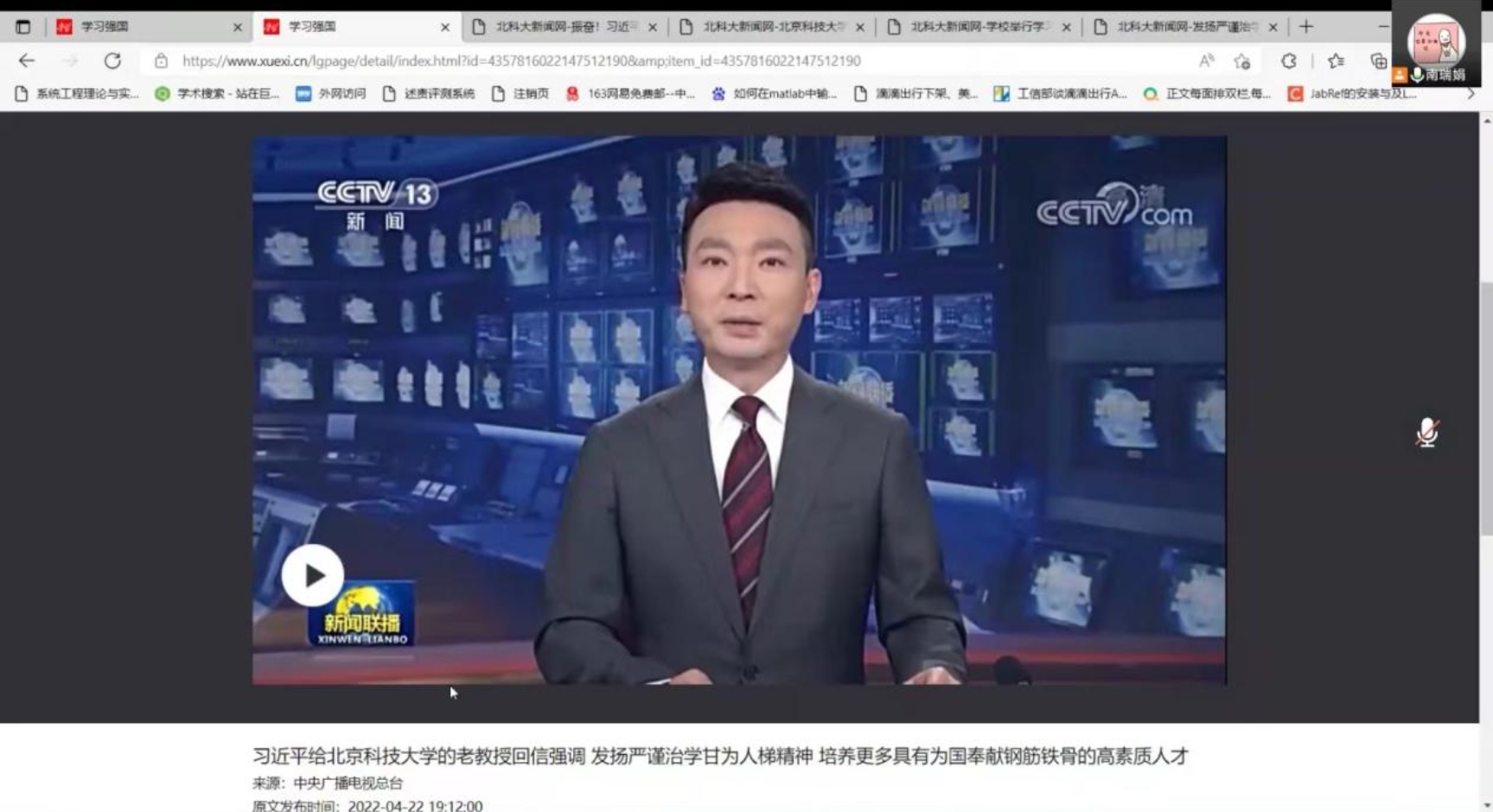 首先是本次组织生活的理论学习部分。首先,支部书记南瑞娟带领支部党员学习了《习近平给狂人小说 老教授的回信》,支部成员收看了《新闻联播》关于习近平总书记回信的相关报道并认真学习阅读了习近平总书记回信原文。
