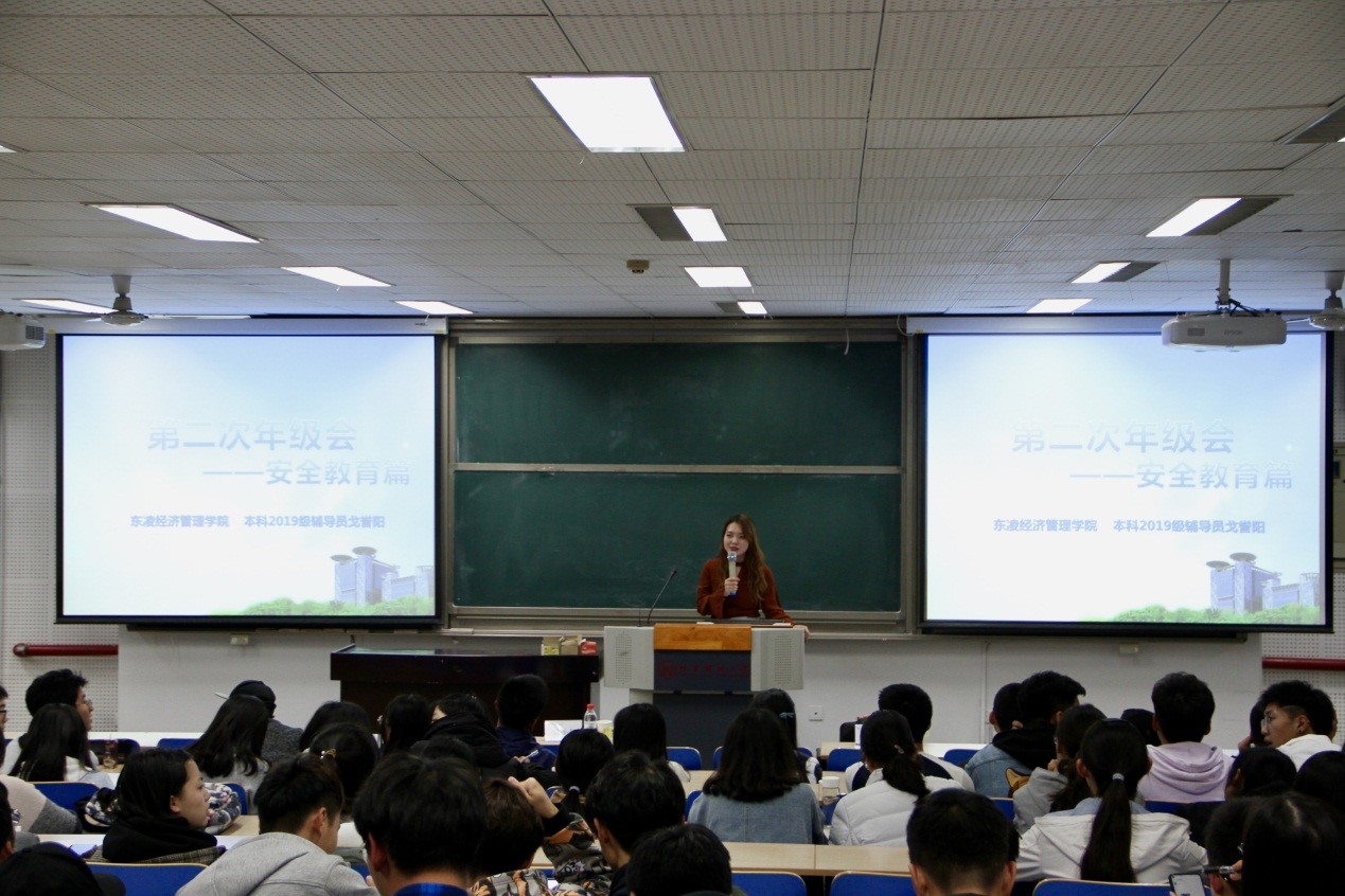 为防范打击通讯信息诈骗,提高学生消防安全意识,加强各类风险防控,维护学生人身、财产安全和学校教育教学秩序,11月6日,东凌狂人小说 本科2019级工商管理类“安全教育”主题年级会于机电楼106顺利举办,辅导员戈誉阳主讲。