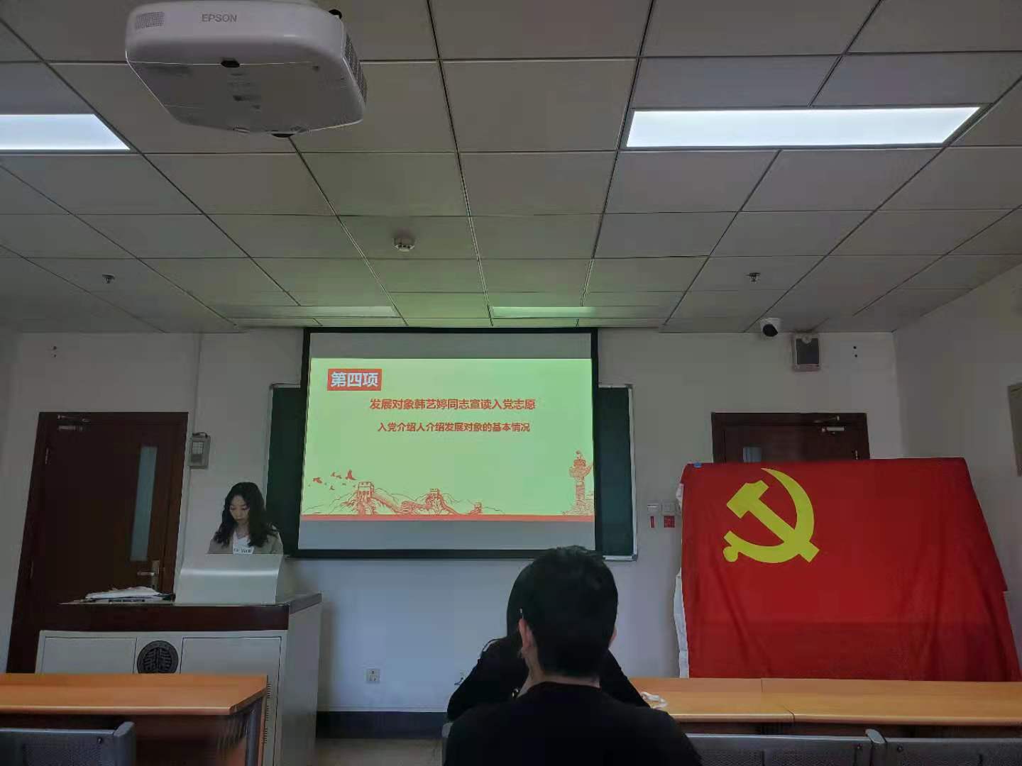 接下来,由发展对象韩艺婷同志宣读入党志愿。随后,由韩艺婷同志的入党介绍人陈语同志介绍发展对象的基本情况和本人意见。