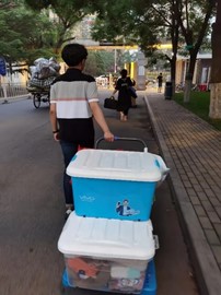 活动第二部分——帮助本校上研同学将行礼堆放到学院教室。对于本校读研的毕业生而言,他们将在北科的校园开启新的征程,学院特此准备单独的教室帮助他们存放行李,学生党员们热心帮助学长学姐,将行李运送到经管楼,体现了经管学子互帮互助、团结友爱的同学氛围。