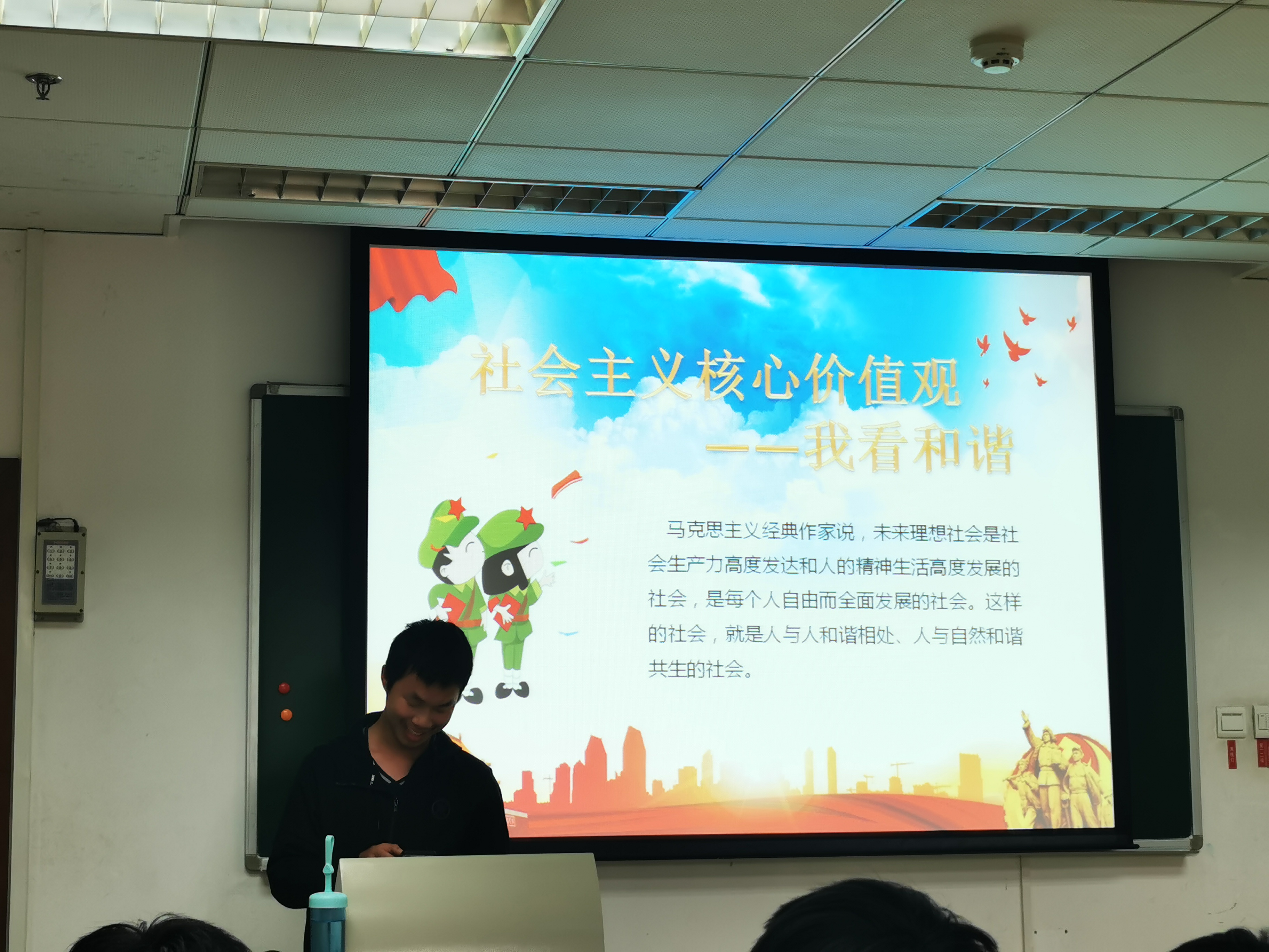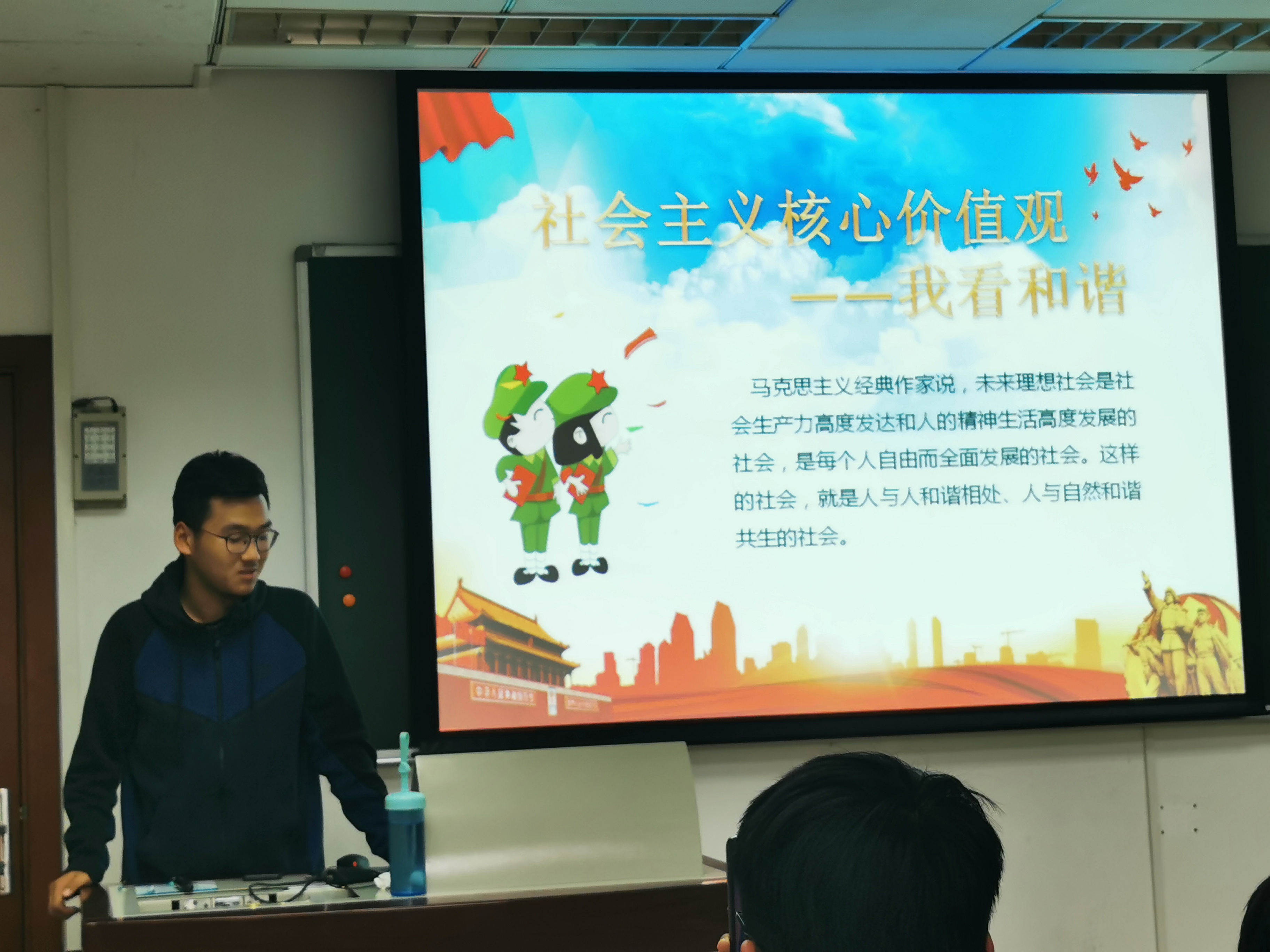 “和谐爱国篇”中,黄祥同学与罗瑞同学表达了个人对“和谐”、对社会主义核心价值观的理解。小到寝室与校园和谐,大到社会与国家和谐,在他们朴实无华的辞藻背后,蕴藏着他们深深的期盼。我们的祖国正因和谐而繁荣富强,走出了独具中国特色的社会主义道路!