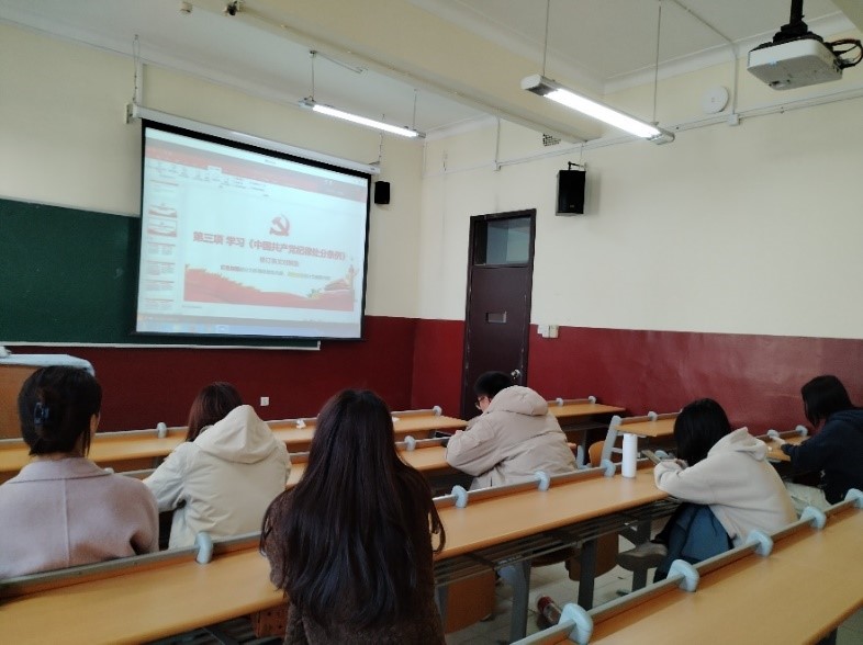 会议第三项,与会成员在支部书记李盈霏同志的带领下学习了修订后的《中国共产党纪律处分条例》,同志们深刻领会了党中央要求,认真学习了《条例》总则修订的重点,李盈霏同志强调,要不断把全面从严治党引向深入,以党章为根本遵循,坚持严的基调,强化系统观念。