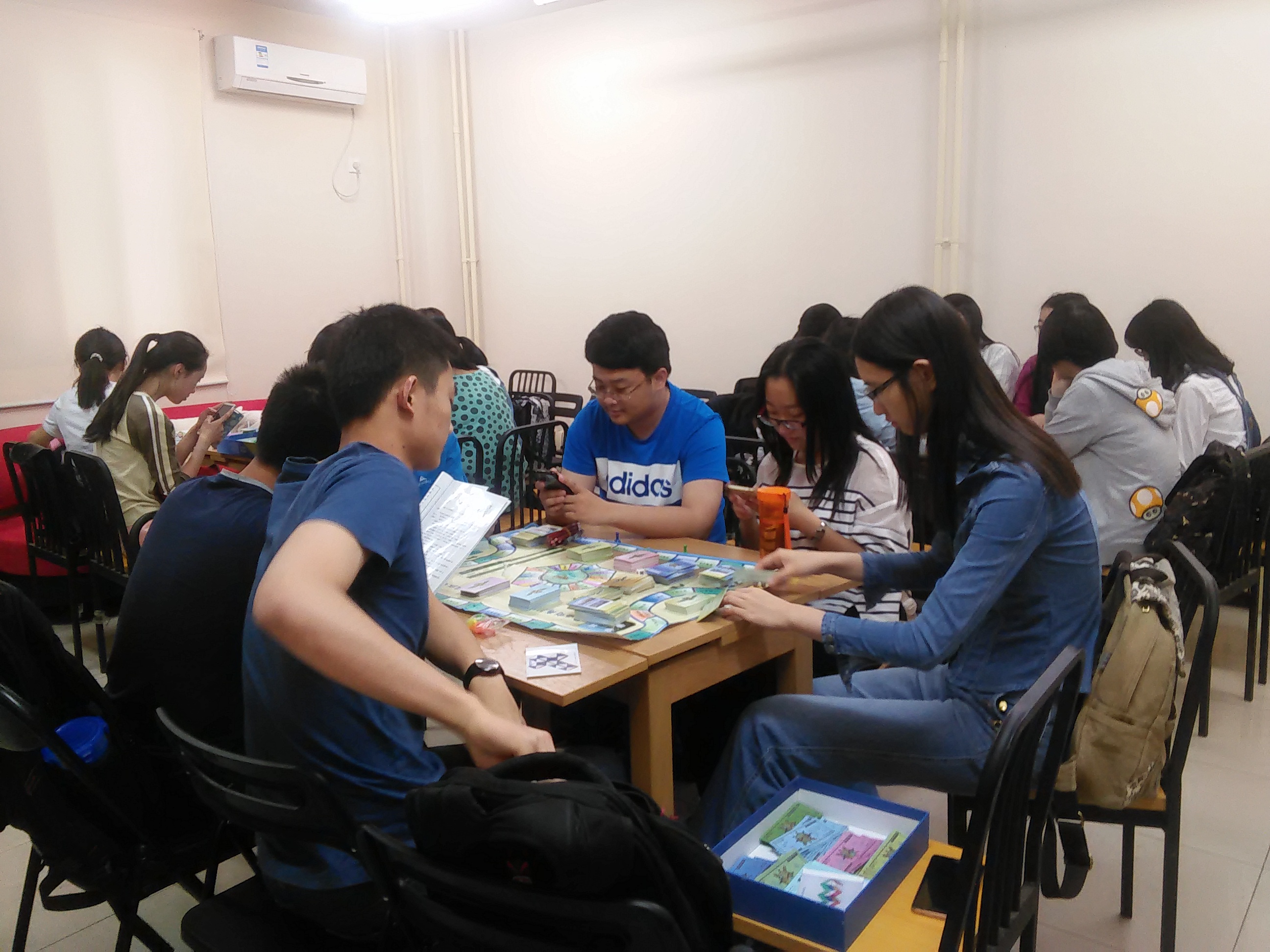 活动的开始,“模拟创业沙盘”的负责人向同学们说明了沙盘的规则,同学们也都极认真的互相讨论询问着游戏中可能出现的各种状况及注意事项。模拟的职业生涯开始,随着职业身份的抽取大家在最初的差异也开始出现,当然随着模拟职业生涯的进行每个人的“职业道路”也渐渐不同,有人一路升职加薪,提高自身技能,积累人脉,抓住机遇渐渐走上创业之路,也有人追求稳定投身国企从此过着安稳平淡的生活。当然,也有同学运气稍差,不仅可能在工作中犯下种种错误,还有可能面临着停职的危险。