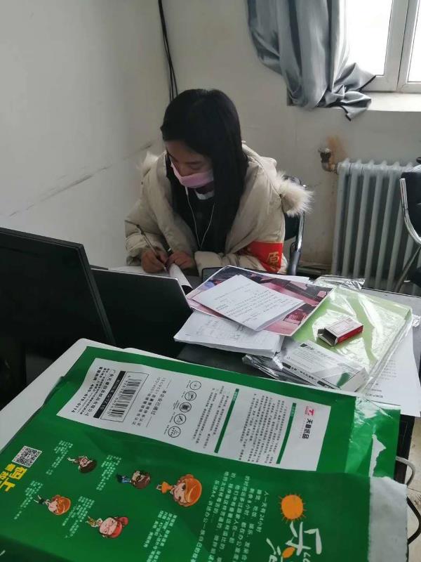 过年期间,村里发布招募志愿者的通知,大年初三,我便带上袖标来到村党支部,开始了我长达24天的志愿者工作。我的工作时间是从早上九点到下午五点,因为志愿者数量不足,大多数时候我是一个人完成工作,有时事情比较多甚至会忘记吃午饭。家里这边很冷,冬天下大雪,我便需要一个人踏着雪地徒步走20分钟的山路到达村支部。