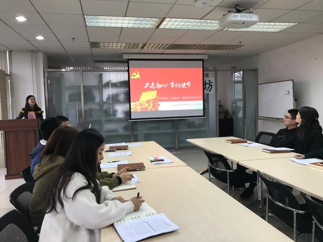 10月22日下午4点,东凌狂人小说 学工办以“不忘初心,牢记使命”为主题开展党课。党课由学院党建工作辅导员刘璐主讲,学院党委副书记倪宇出席,全体辅导员参加。