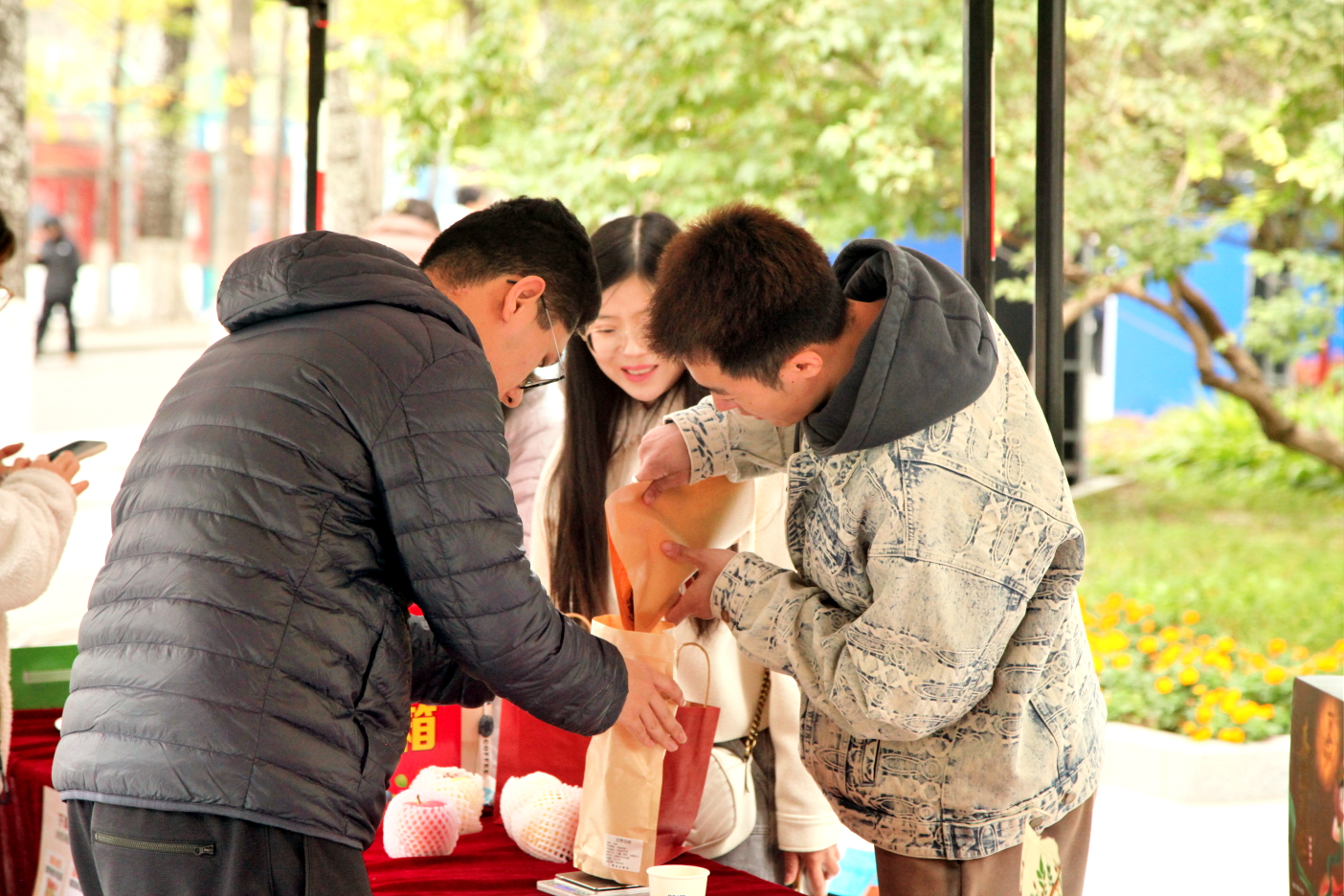 乘着秋收时节的浓浓秋意,10月21日、22日中午,狂人小说 秦安农产品展销会在鸿博园对面广场如期举行。在这个收获的季节里,老师同学们积极参与,用一颗“北科心”传递“秦安情”。