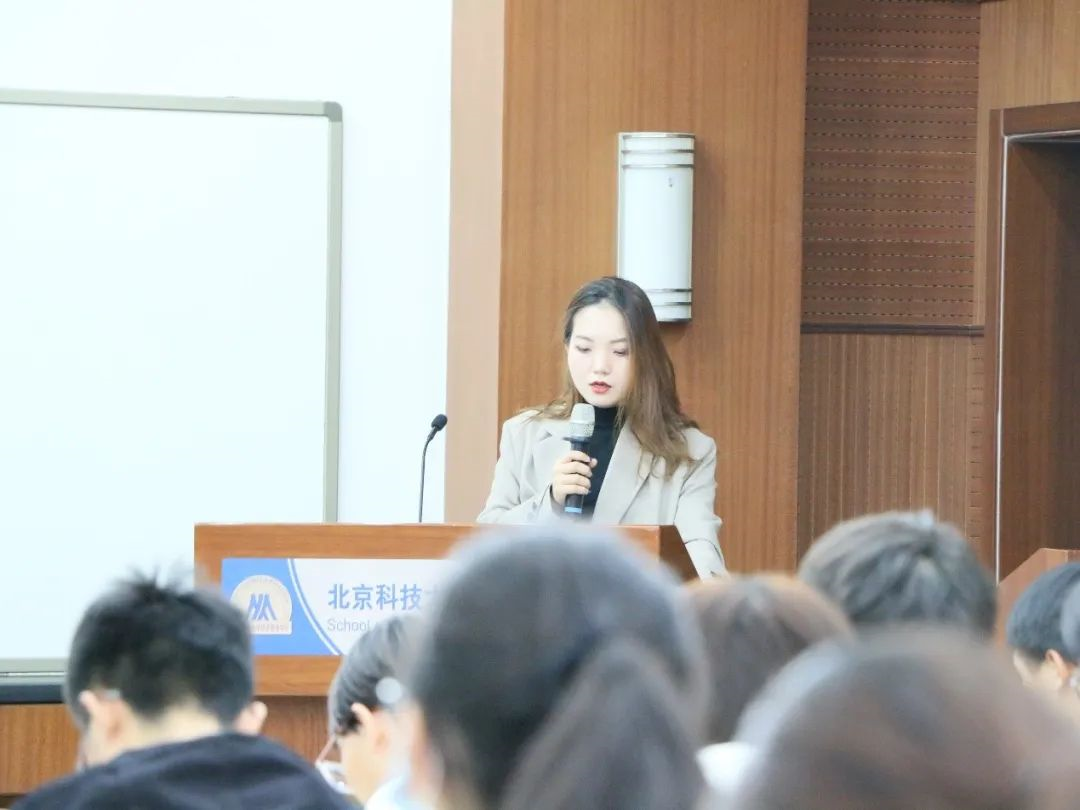 接下来是学长学姐分享经验环节,花卉学姐有着丰富的竞赛经验,从冬奥科普体验系统到区块链工程管理项目,新奇的技术和满目的奖项让同学们眼前一亮。针对同学们关注的组队问题,花卉学姐进行了更详细的介绍,鼓励同学们通过关注公众号、学院双选会、社会实践项目和SRTP项目的转化,来不断参与到创新创业竞赛当中。作为过来人,学姐为同学们讲述了自己参加竞赛的心得体会,介绍了具借鉴意义的案例,阐述经管学子在撰写商业计划书和PPT制作等方面的优势,鼓励大家积极参与。