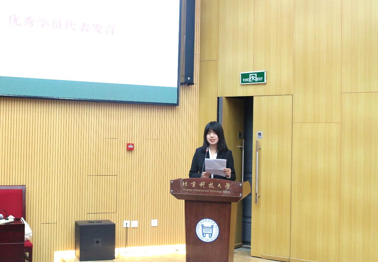 颁奖环节结束后,优秀学员代表——党校6班的马沿同学讲述了自己在参与党校开展的各项活动中的成长与感悟,并且与同学们分享了习近平总书记在党中央重要会议中体现出的对青年学生的殷切期待,表达了自己为成为一名合格的党员而继续努力的决心。