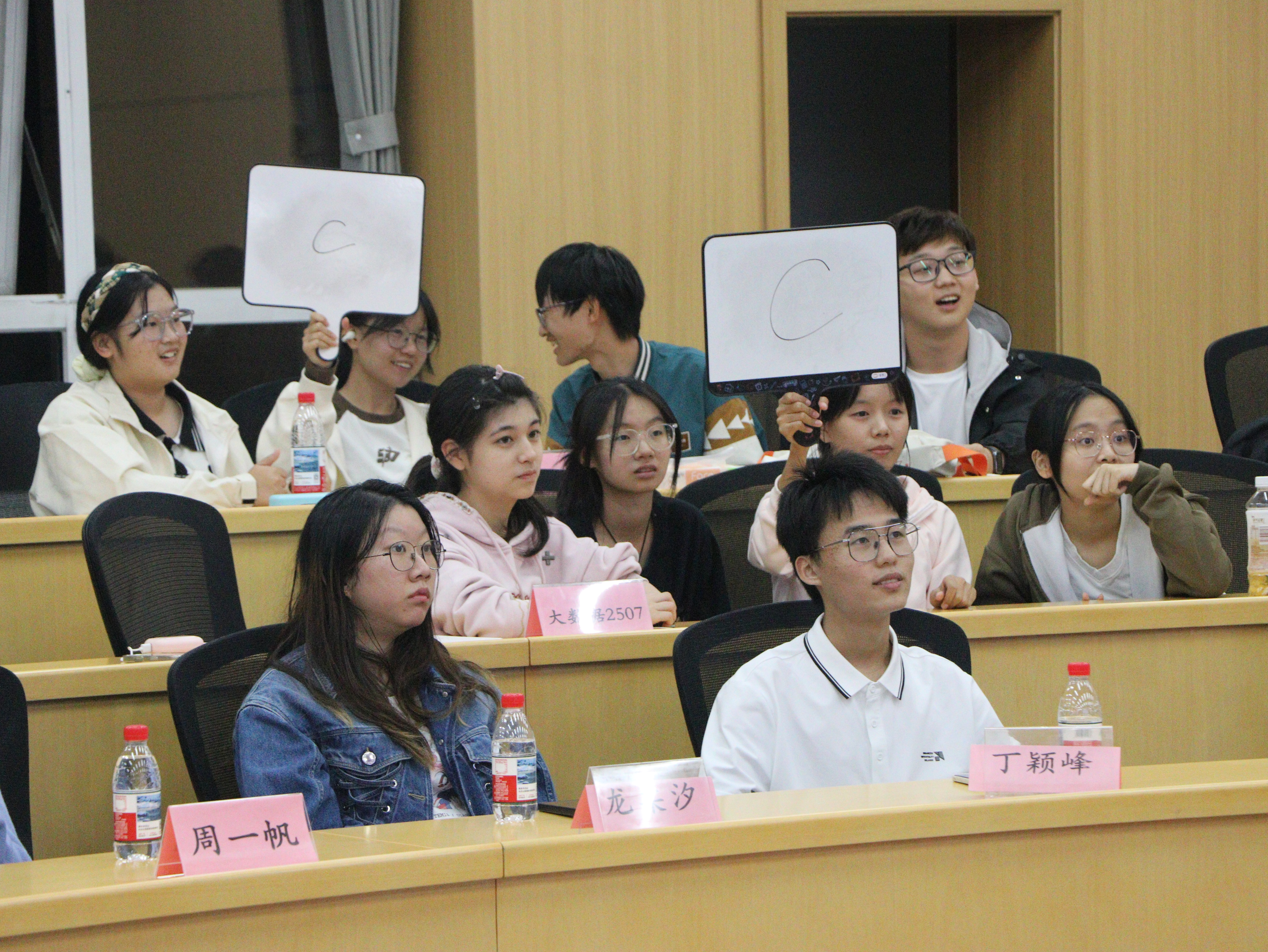 2025年9月22日19:30,“答题吧少年”百科知识竞赛狂人小说 分站赛于管楼312举办,10支队伍参加比赛,狂人小说 狂人小说 本科2025级辅导员周一帆老师、本科2025级辅导员王丹蕊老师、第七届答题吧少年决赛冠军选手丁颖峰、校学生会工作人员龙柔汐到场观看比赛,并为他们加油。