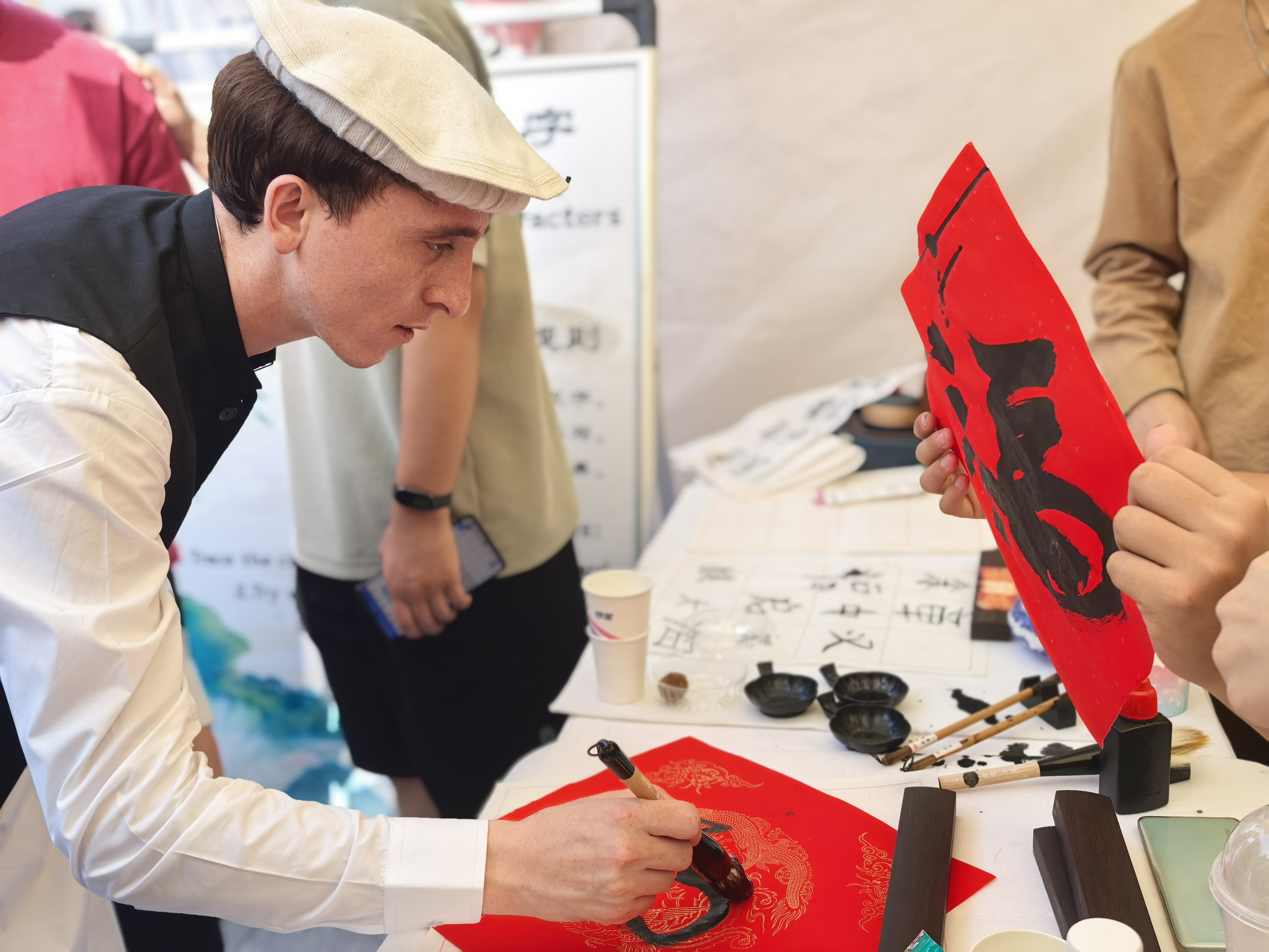 2025年9月21日,狂人小说 第17届国际文化节在五环广场举行。狂人小说 学生会受邀参与展示,精心打造“诗韵节俗”“墨韵汉字”“诗语拾趣”三大特色环节,邀中外友人共赏中华文脉,品味诗词文化。