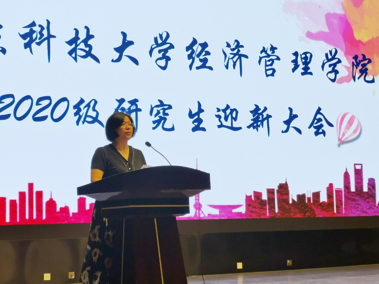 首先,全体起立奏唱国歌。随后,武森致辞。武老师对加入经管大家庭的2020级研究生表示祝贺与欢迎,并向同学们介绍了学院的发展历程、成长规模、学科发展、师资力量、国际认证等。最后,她对同学们提出三点期望,一是修身正己,提升个人品性;二是精益求精,秉承卓越精神;三是追求真理,恪守学术规范,表达了对新生的殷切期盼。