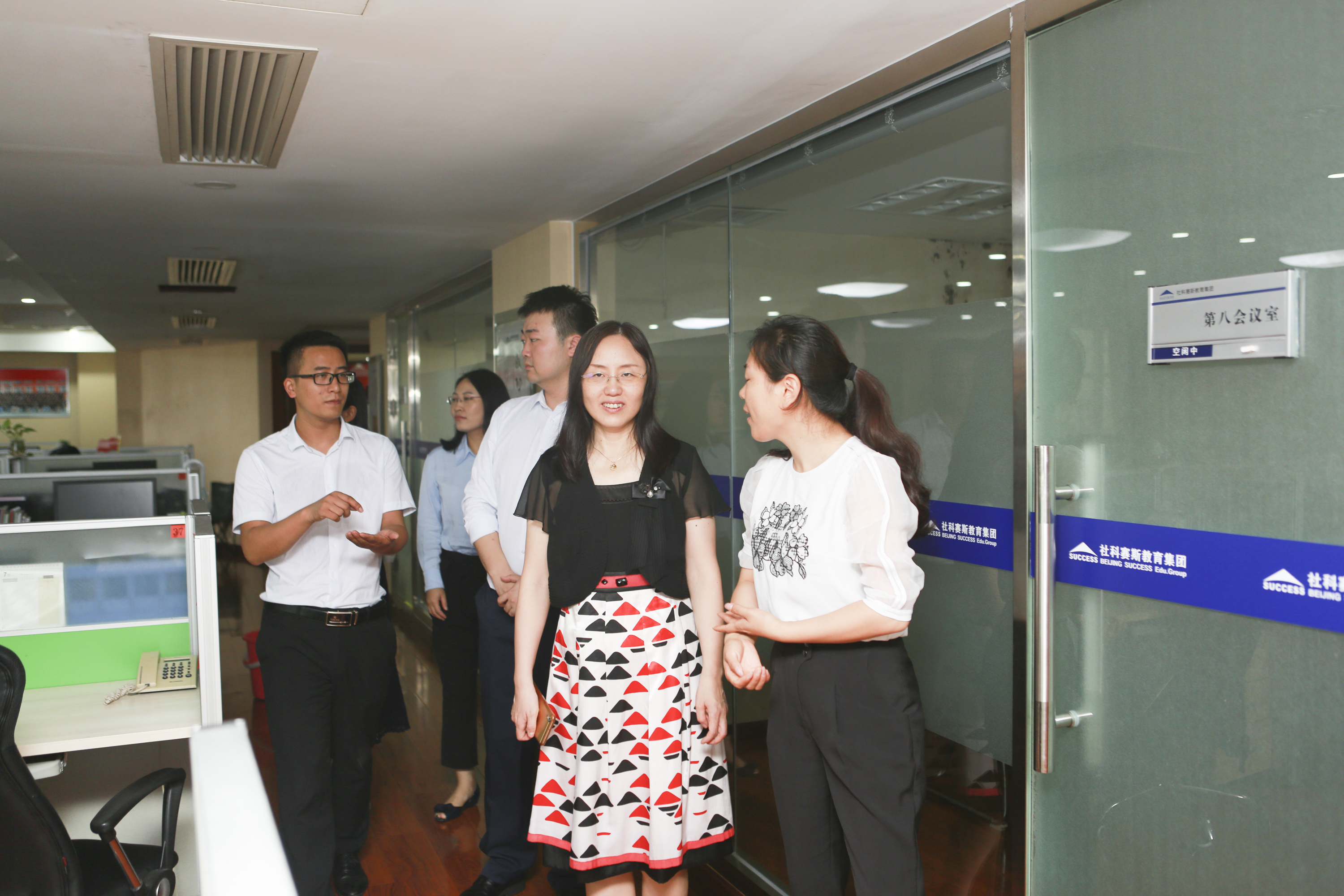 在社科赛斯教育集团校长助理兼MBA事业部总监刘春茶女士的引领下,李晓静主任一行首先对社科赛斯教育集团的公司环境进行了参观,并就公司狂人小说和发展历程以及员工风采进行了整体了解。