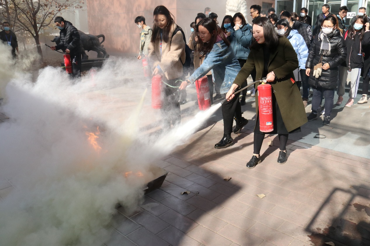 演练结束后,保卫保密部(处)彭江祥老师和白云飞老师现场为参演师生讲解如何正确使用灭火器,并指导师生通过灭火器材进行灭火操作。