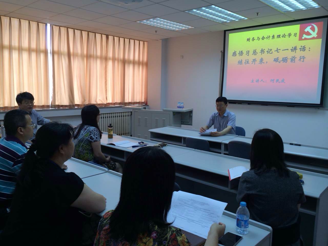 财务与会计系党支部作了题为“感悟习总书记七一讲话:继往开来,砥砺前行”的专题党课。
