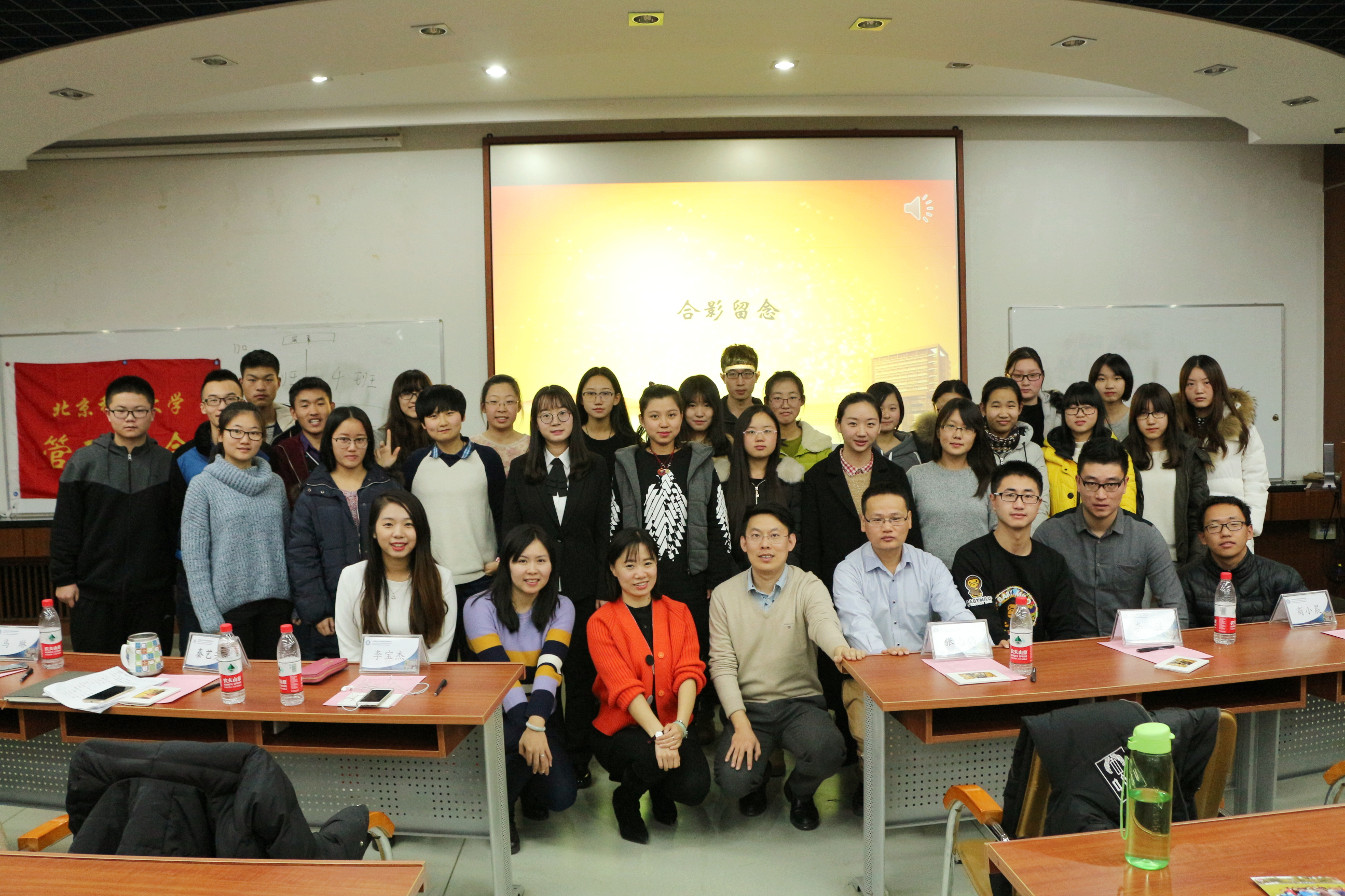 本科16级辅导员马琳老师、商小晨老师以及2016级工商类114名全体新生。本场活动针对工商管理类大一新生的学习、工作和生活方面进行了充分的交流,现场气氛轻松活跃。