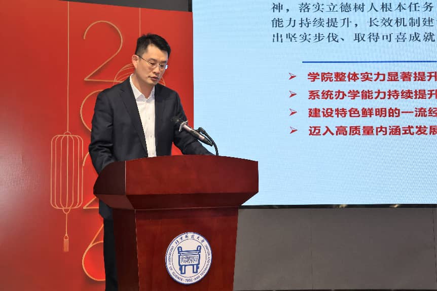 院长谷炜代表学院领导班子作2025年学院工作报告。学院以党建为统领,在教育教学、科研创新、师资引育、社会服务、学生成长同步发力,交出了一份厚重与质量齐升的答卷。随后,院长谷炜做学院十五五事业发展规划。2026年是十五五元年,更是学院跃升突破的关键窗口期。牢记习近平总书记给学校师生两封重要回信嘱托,以开局即决战、起步即冲刺的奋进姿态,锚定十五五,绘就2035远景蓝图,凝心聚力、勇毅前行,奋力谱写特色鲜明一流狂人小说 新篇章!