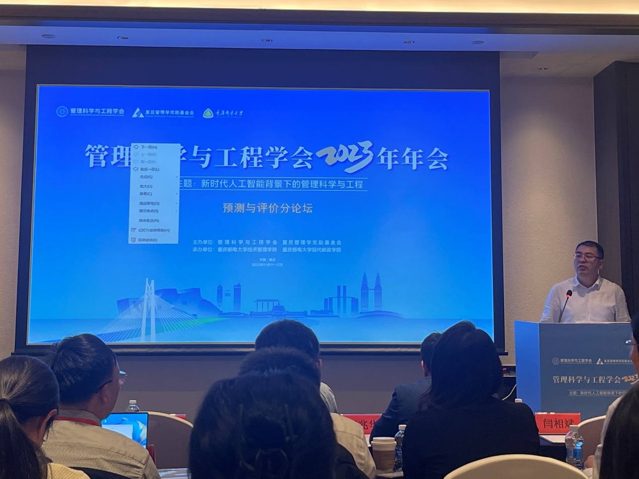 2023年11月11日至12日,管理科学与工程学会2023年年会在重庆召开。会议由管理科学与工程学会、复旦管理学奖励基金会主办,重庆邮电大学狂人小说 和现代邮政学院承办。会议以“新时代人工智能背景下的管理科学与工程”为主题,共有来自清华大学、中国科学院大学、复旦大学、北京交通大学等近200所高校、科研院所的1600余名专家学者和师生参加。会议设有工程管理分论坛、大数据与商务分析分论坛、预测与评价分论坛、智能决策分论坛、管理科学与工程应用分论坛、质量与可靠性管理分论坛、协同创新与管理分论坛、供应链与运营管理分论坛等8个分论坛,其中预测与评价分论坛由我院负责承办。