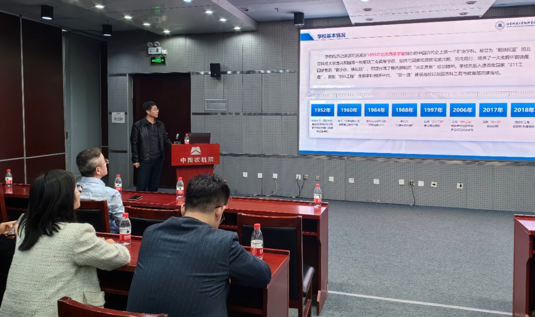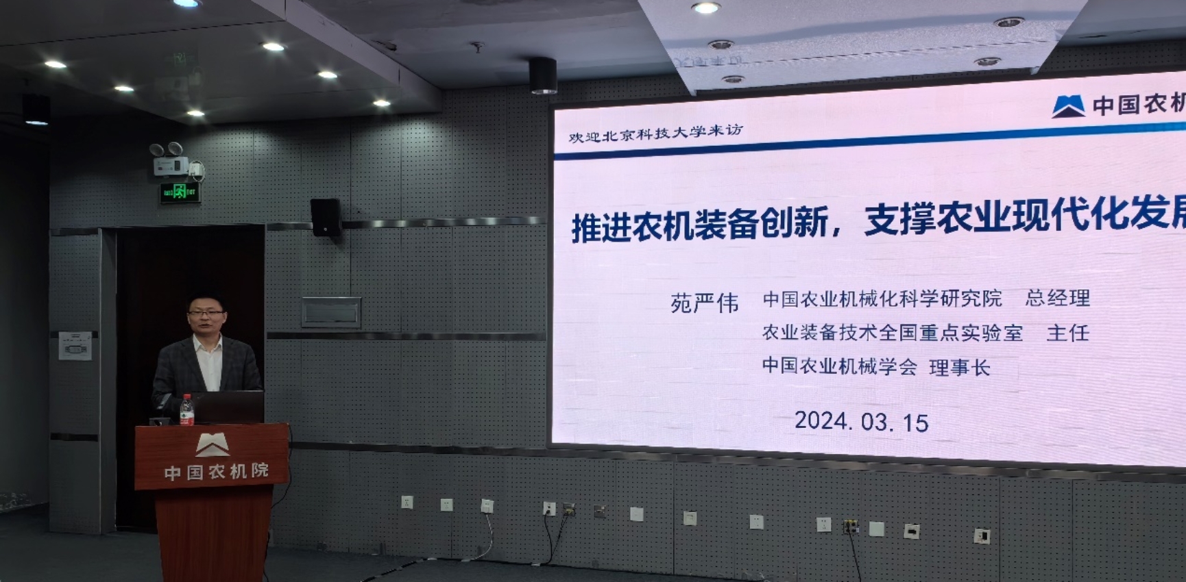 随后,中国农机院党委副书记、总经理苑严伟先生详细介绍了中国农机院的发展历程、科研成果及其在现实生产中的应用、企业的使命和未来发展规划。这番介绍不仅让师生们感受到了“播种绿色、收获健康”的企业愿景,也进一步加深了他们对中国农机院的了解。
