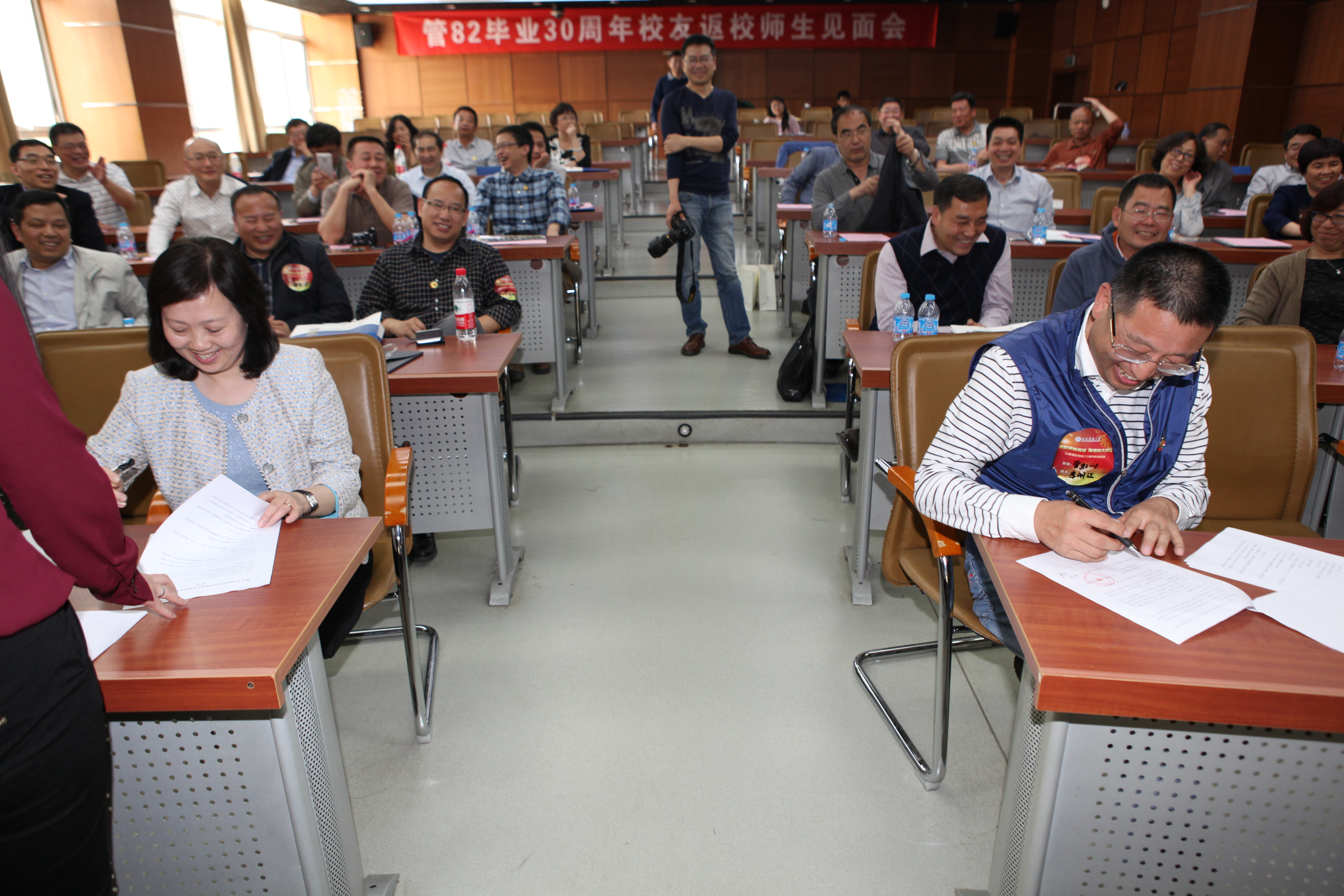 座谈最后,“管82校友基金”捐赠仪式举行,戴淑芬书记和班级代表签订捐赠协议并向班级发放证书。戴书记感谢管82校友们对学院一直的大力支持,向校友们介绍了校友基金的管理及使用情况,希望校友们能够向学弟学妹分享自己的经验和智慧,通过经管校友网和校友微信加强与学院的联系。