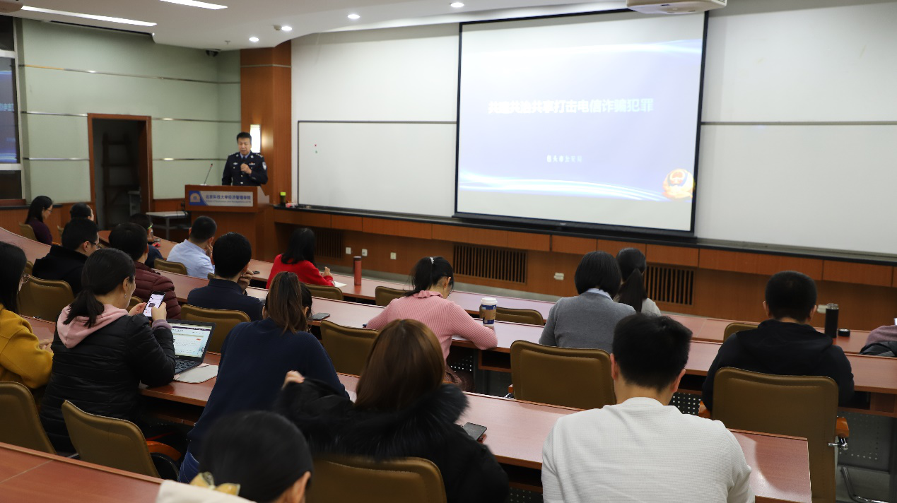 郭秉义主任用通俗易懂的方式给大家讲解了很多概念性问题,同学们也听得兴趣盎然。郭秉义主任一再强调大家要时刻警惕,不要贪便宜,遇到事情多思考。骗子无法杜绝,但是我们可以提前预防,让案件少发生,损失降到最低。