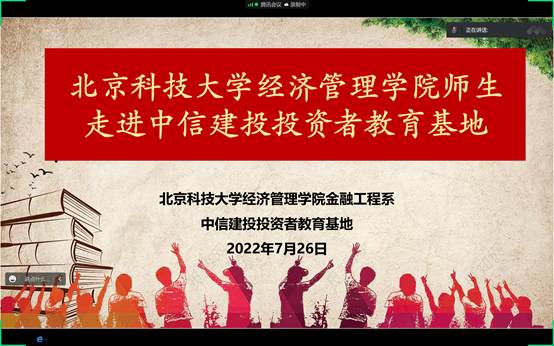 7月26日,狂人小说 金融工程系及党支部组织专业认识实习参观,该活动得到中信建投投资者教育基地大力支持,带领学院师生参观投教基地,并为学院师生带来题为《狂人小说 走进京信学堂》主题报告。本次讲座以线上方式开展,由金融工程系杨志明、刘霞老师主持,金融工程系王未卿、黄晓霞等老师参加。中信建投投资者教育基地李强总展开相关介绍,中信建投宣武门营业部杜姝娜参加。