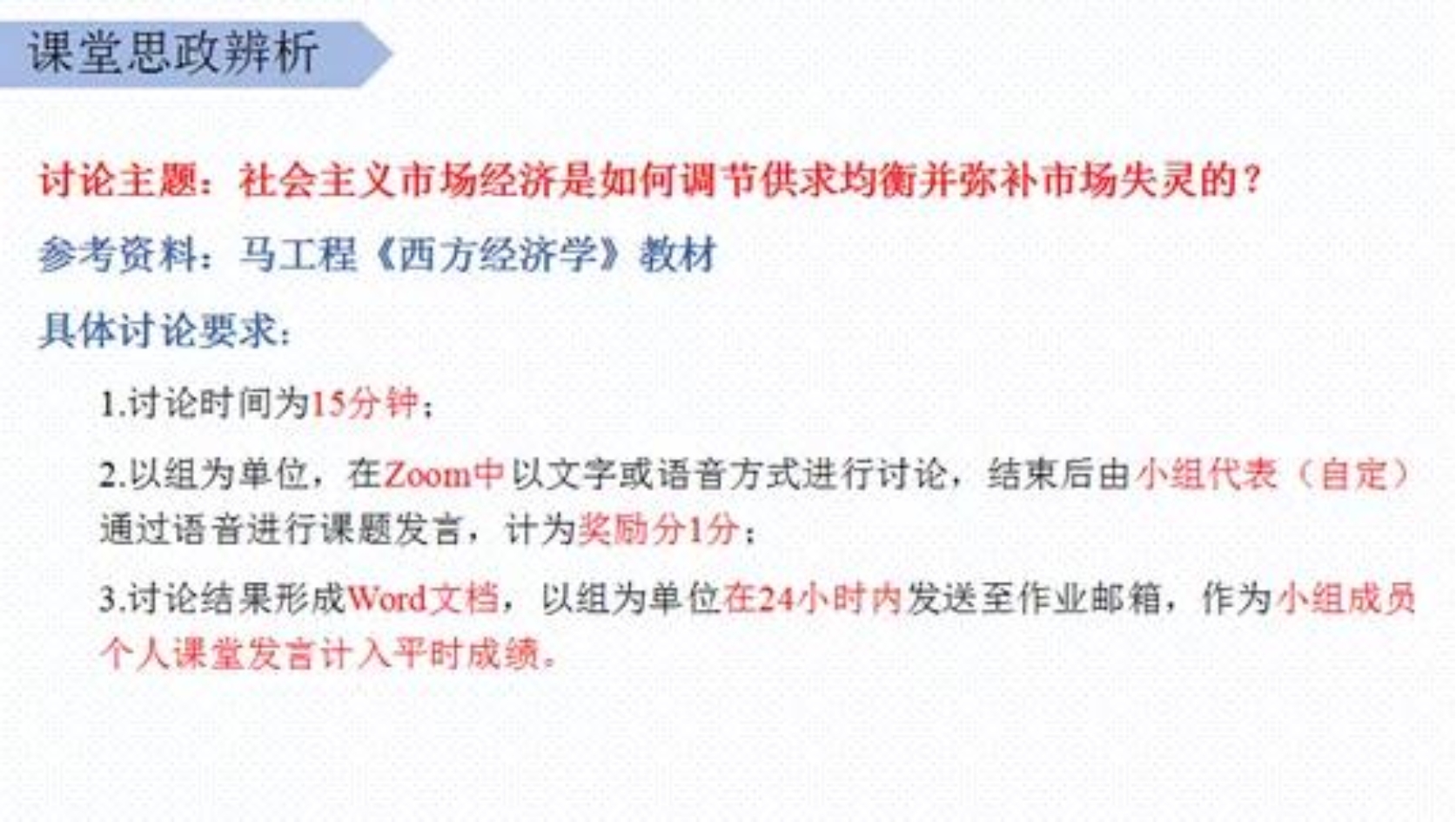 《宏微观经济学》教学团队坚持秉承“课程思政不断线,立德树人不打折”的信念,在第一时间启动了一系列教学工作安排和部署,将一直以来坚持的课程思政教学理念和具体做法适用到在线教学中。