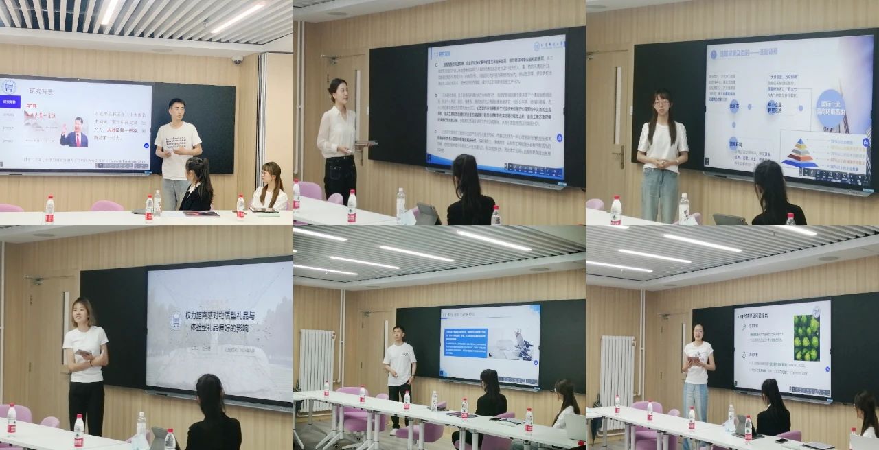随后,活动进入到学生报告环节。参与论坛活动的8位本、硕、博同学依次进行了学术报告。步行同学进行了题为“中国文化情境下工作狂的结构维度和量表开发”的报告,围绕本土概念化界定、本土化特征等方面进行了精彩阐述。迟志康同学进行了题为“人才管理影响效用及其调节变量:一项元分析研究”的报告,讲述了现有人才管理实证研究中的不一致结论。贾蘅琳同学进行了题为“员工绿色行为对个体繁荣的影响机制研究”的报告,新颖的研究视角和严谨的研究设计得到了老师们的一致肯定。刘子钰同学进行了题为“权力距离感对物质型礼品与体验型礼品偏好的影响”的报告,发现送礼人的文化价值观对不同类型礼物的偏好有重要影响。王琳茹同学进行了题为“员工抱怨的形成机制研究——工作场所中心理契约违背对员工抱怨和反思的作用”的报告,探索员工抱怨行为的机制。刘红地同学进行了题为“中国情境下创业型领导力的结构研究”的报告,建构中国情境下创业型领导力的概念和内容结构。丁瑞同学进行了题为“北京市中小企业营商环境实证测评——从营商环境变化的视角看组织人才管理”的报告,进一步优化营商环境的着力点。李坤融同学进行了题为“人工智能知觉对个体的社会网络行为影响研究”的报告,发现人工智能知觉对学生社交的影响十分重要。