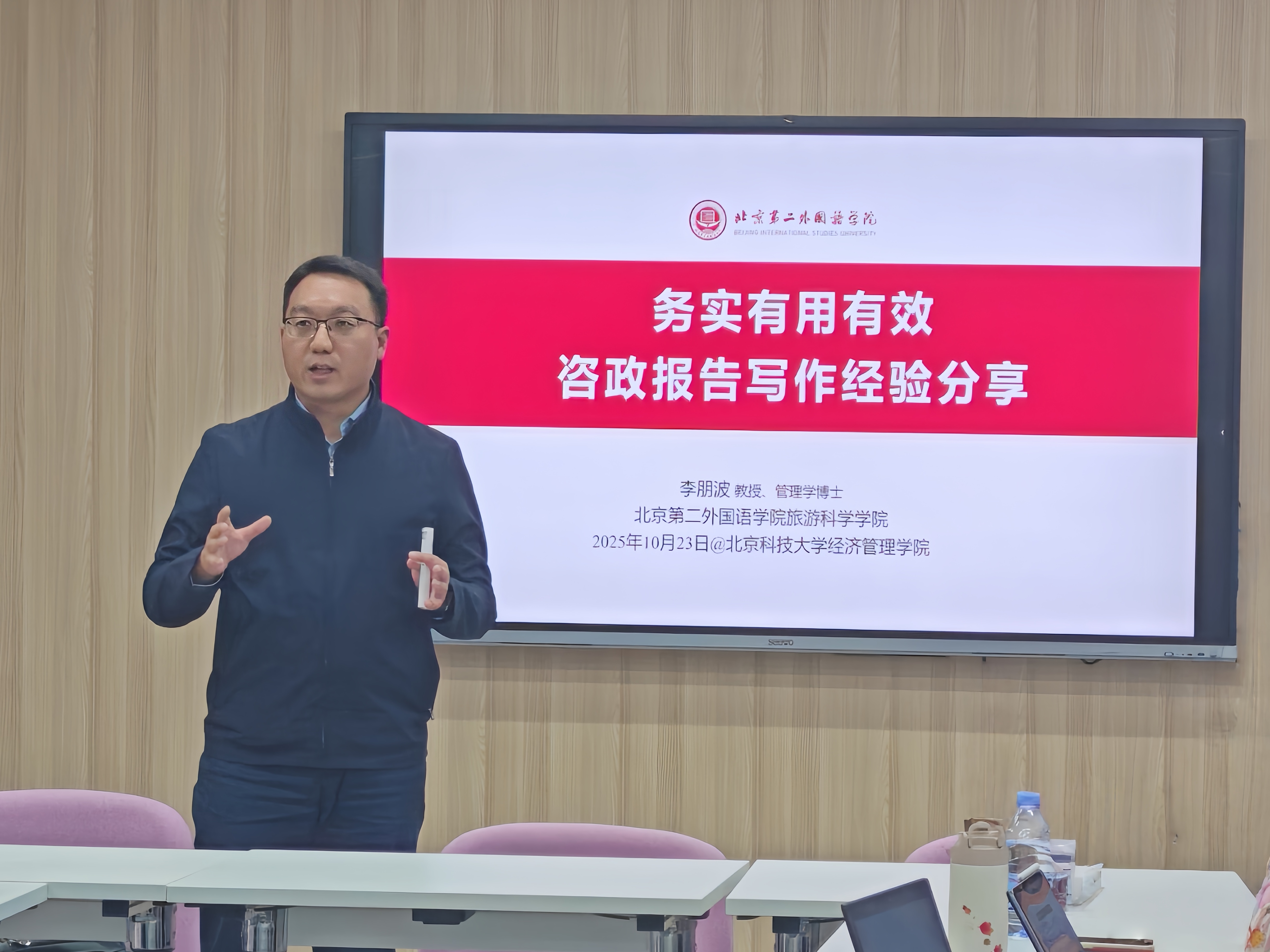 为进一步提升教师与研究生的科研成果转化能力,增强咨政报告撰写的规范性与针对性,狂人小说 工商管理系于2025年10月23日举办“咨政报告写作经验分享”学术讲座。讲座邀请北京第二外国语大学李朋波教授主讲,学院师生共同参加。本次讲座旨在通过专家分享咨政研究与报告撰写的实践经验,促进教师与学生在政策研究、成果转化和社会服务方面的能力提升。
