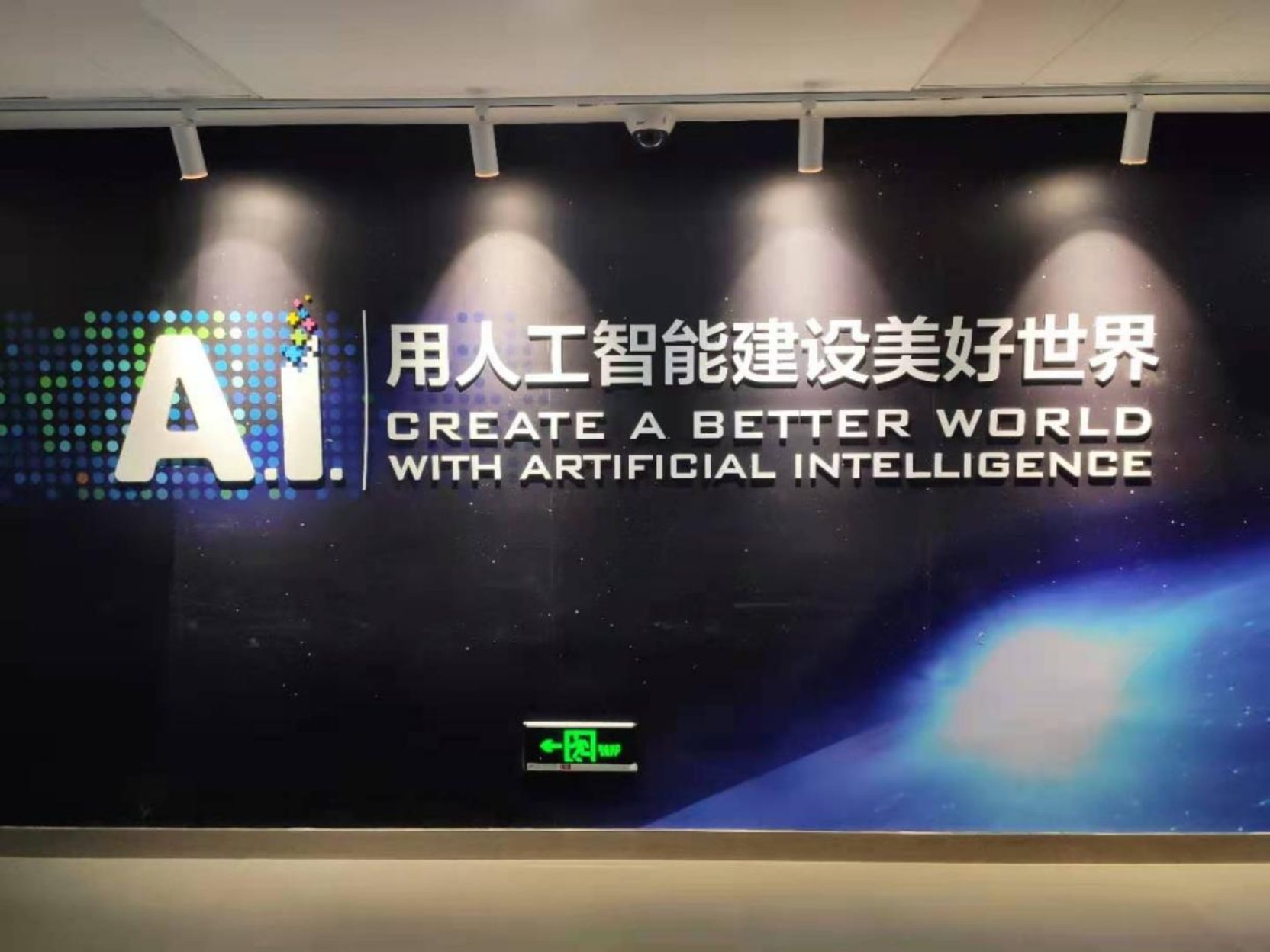 在人工智能厅参观时,向导为我们演示了公司软件的翻译功能。