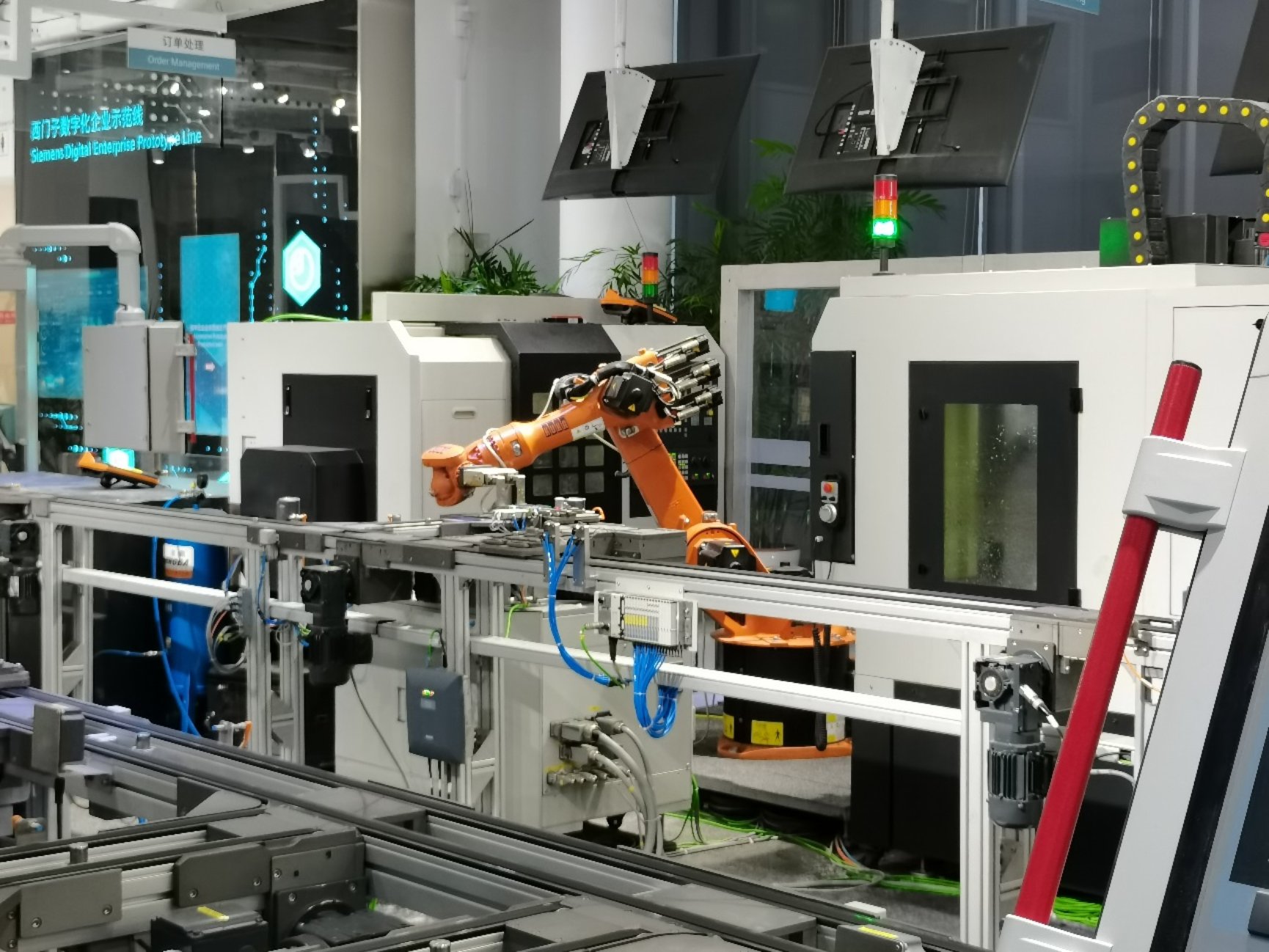 当天,西门子向导带领大家先参观了数字化企业展厅,并对西门子的数字化企业模式进行了简介。西门子数字化工业的虚拟现实双胞胎理念,从设计、规划、工程、生产到维护等过程,让生产线学会思考,让海量数据创造价值,让大规模定制化生产成为可能;让产品在更短时间上市,更灵活高效运行。用更可靠的质量以及更安全的信息管理,逐步迈向工业4.0.