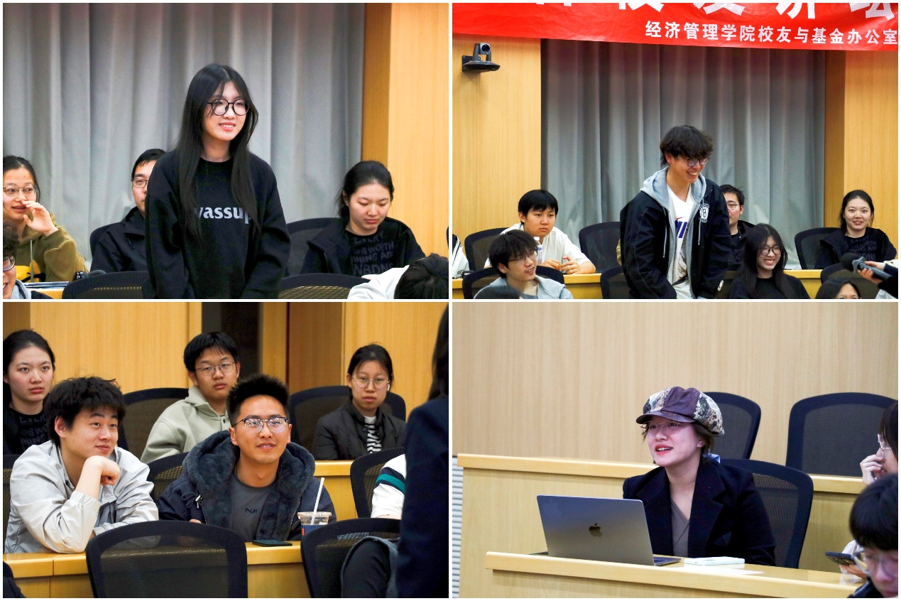 在互动交流环节,针对同学们关心的AI时代职业选择、核心素养等问题,沈静校友结合自身深耕行业多年的实践体悟,从行业转型趋势与个人能力匹配等维度给予细致解答。她鼓励同学们紧跟科技变革步伐,在行业发展中找准自身定位,以数据思维与价值共创能力,开拓属于自己的职业发展路径。