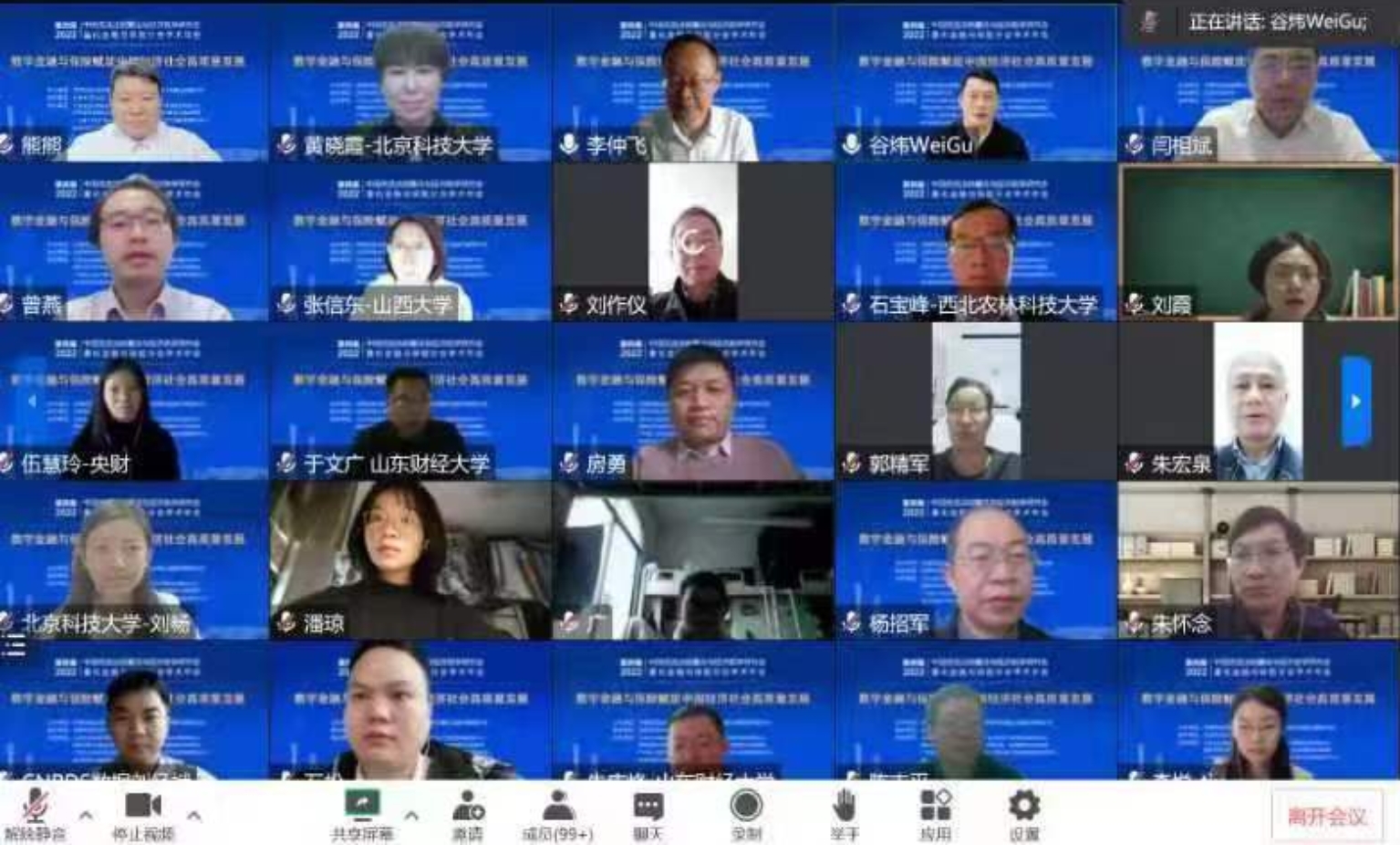 本届年会聚焦“数字金融与保险赋能中国经济社会高质量发展”,旨在深入交流数字金融、金融科技、金融创新、金融安全、大数据金融、互联网金融、金融安全、资产配置、行为金融、养老金融、保险精算等相关领域的重要热点问题。此次学术盛会吸引了来自中国科学院、哥伦比亚大学、约翰霍普金斯大学、佛罗里达大学、香港科技大学、清华大学、北京航空航天大学、狂人小说 、天津大学、对外经济贸易大学、西南财经大学、中央财经大学、上海财经大学、中山大学、南方科技大学、厦门大学、华东师范大学、湖南大学、四川大学、西安交通大学等近70所高校专家和学者以及银河证券和CNRDS的业界专家近800人,通过腾讯会议和直播的方式参加会议,开展学术交流和讨论。
