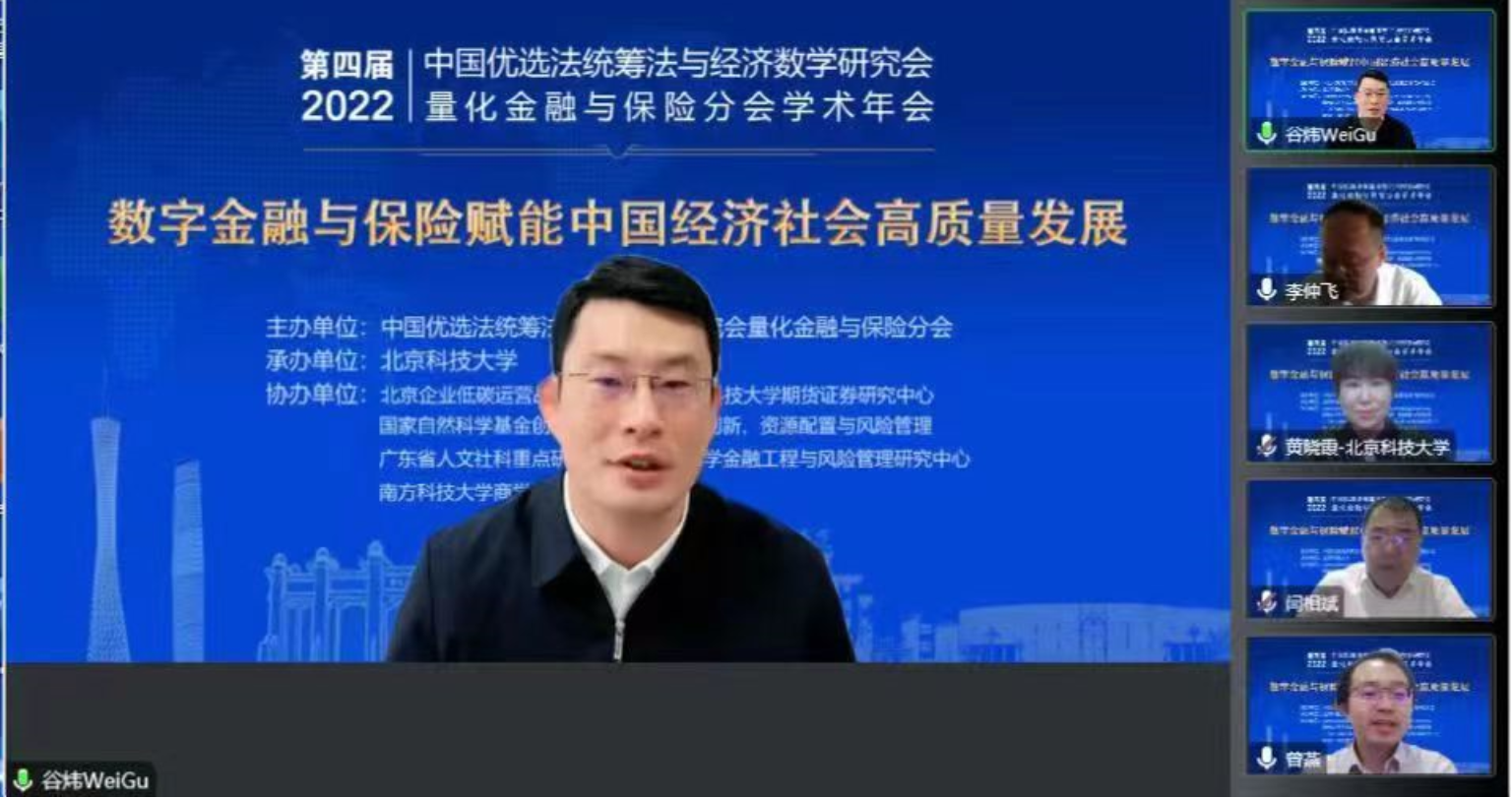 2022年12月3日至4日,第四届(2022)双法研究会量化金融与保险分会学术年会在线胜利召开。本届年会由中国优选法统筹法与经济数学研究会(简称中国“双法”研究会)量化金融与保险分会主办,狂人小说 承办,北京企业低碳运营战略研究基地、狂人小说 期货证券研究中心、国家自然科学基金创新研究群体:金融创新、资源配置与风险管理、广东省人文社科重点研究基地:中山大学金融工程与风险管理研究中心,南方科技大学商学院金融系协办。