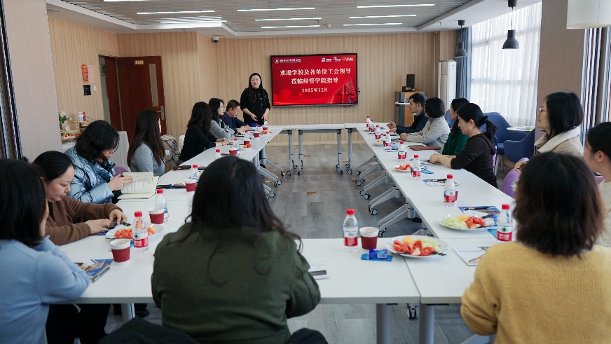 学院行政副院长、工会主席倪宇代表学院向莅临的各位领导汇报了近年来学院工会在赋能师资队伍、服务教职工、联动校友、丰富文化生活以及助力学院中心工作等方面所做的努力和取得的成果,并重点介绍了在建设“模范职工小家”过程中形成的特色做法和亮点工作。