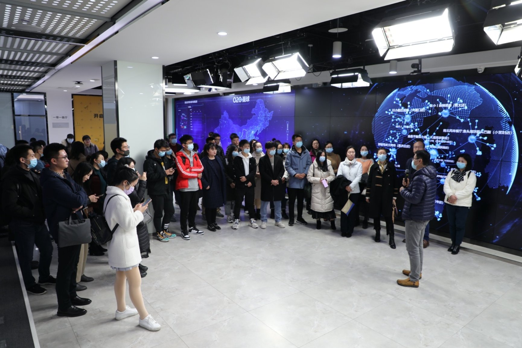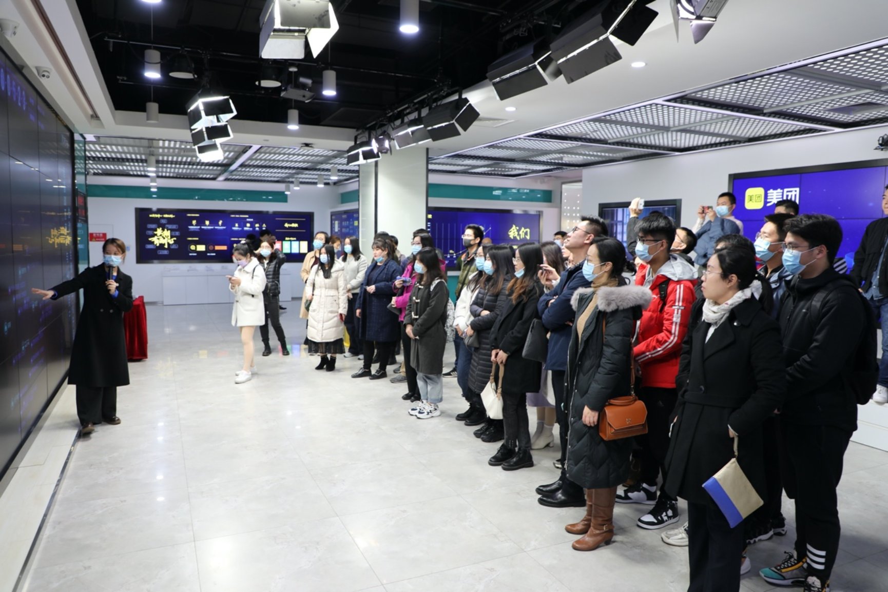 当天,同学们首先参观了美团综合指挥中心的展厅区域。