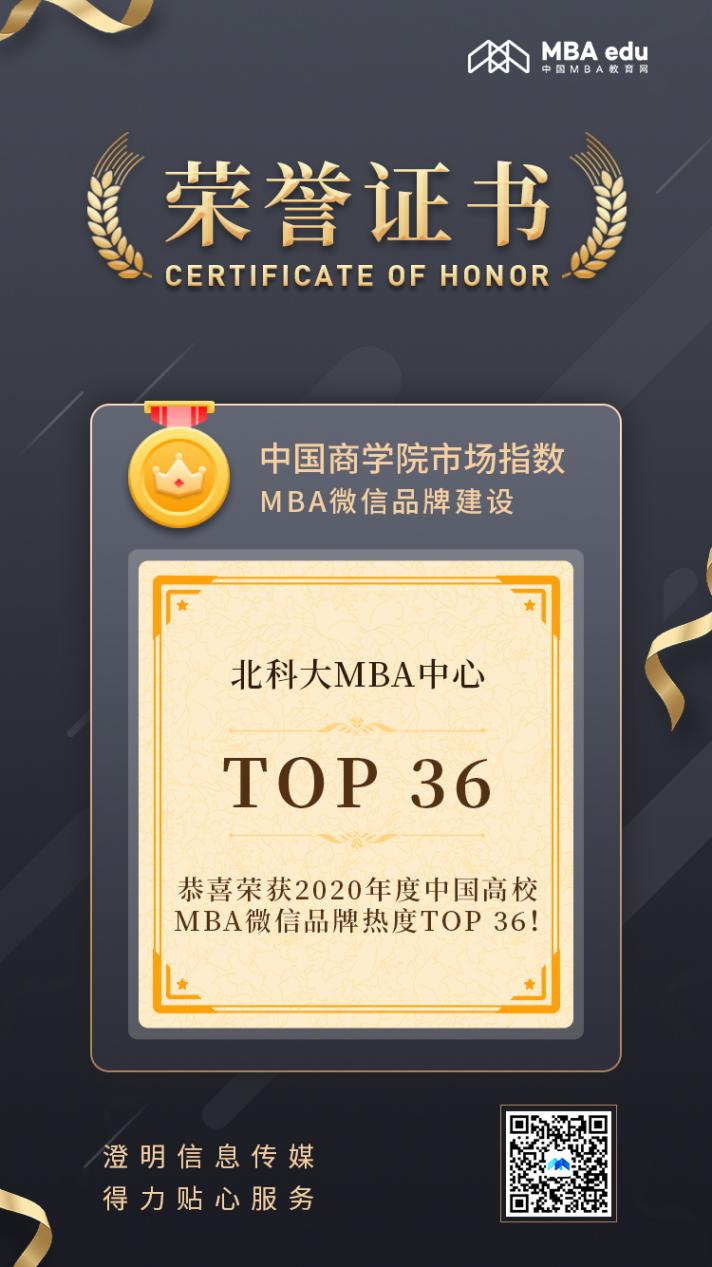 “北科大MBA中心”公众号位列“2020年度中国高校MBA微信品牌热度榜单”第36位!